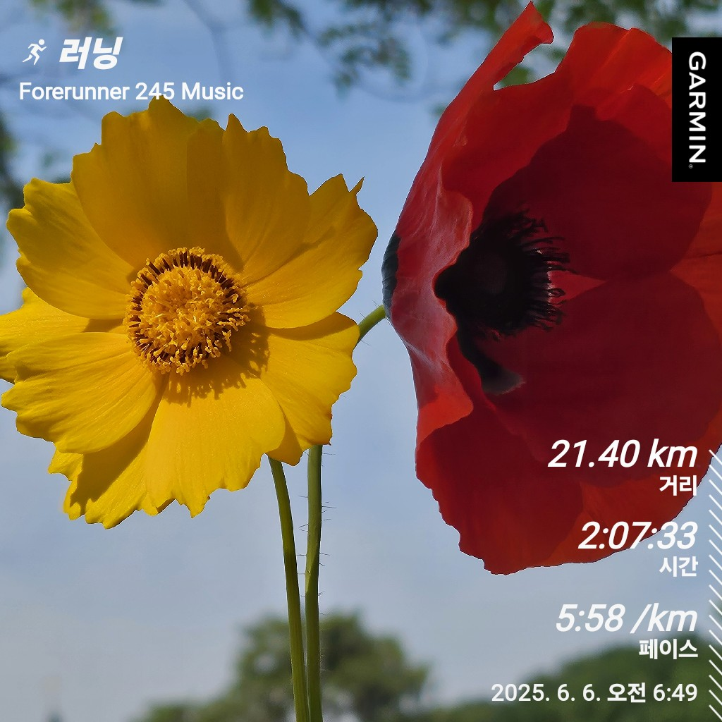 6월 15일 일요일, 긍정의 힘 마라톤 21.2km 2시간 14분 32초 Pace 6:21