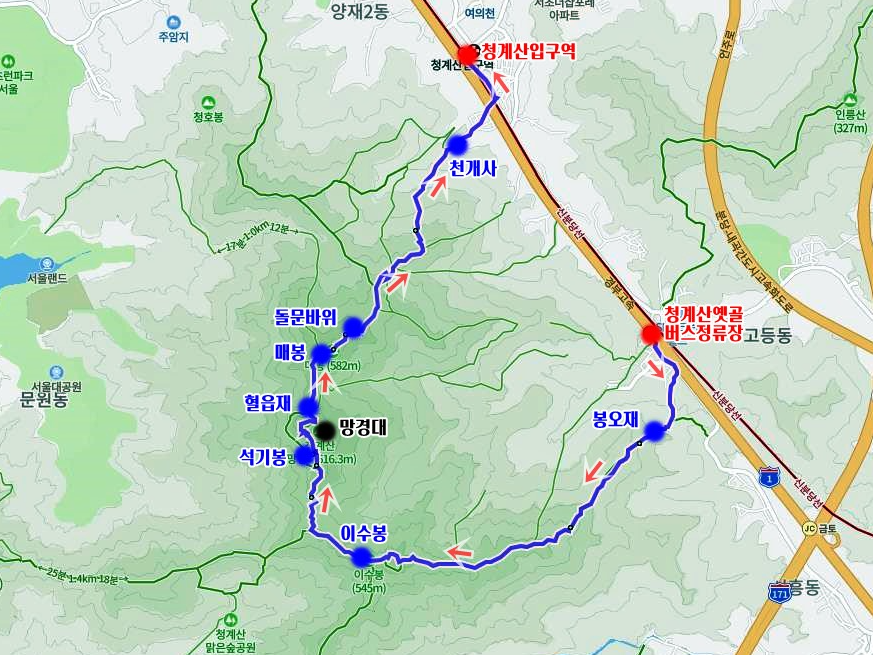 - 1팀 원터골(8시 출발)-정자-헬기장- 매봉-옛골-매봉산장(10시 30분)
