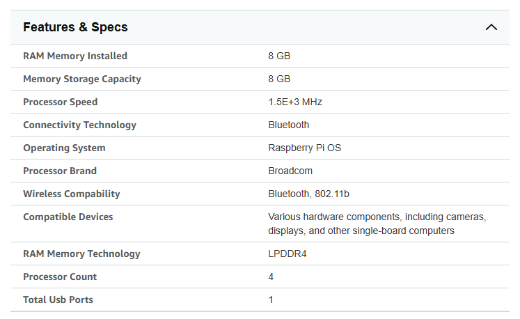 - 이전 모델보다 더 강력한 Broadcom BCM2711 쿼드 코어 Cortex-A72(ARM v8) 64비트 SoC @ 1.5GHz.