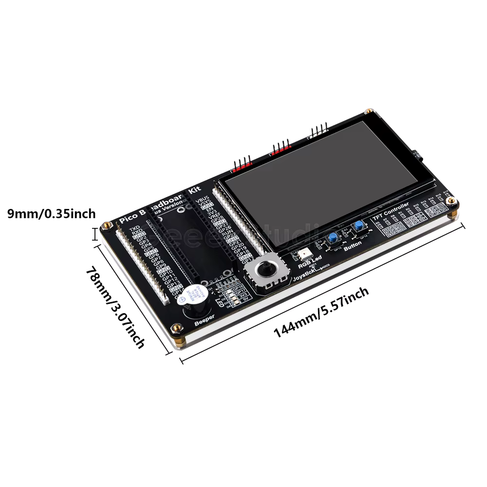 3.5인치 터치 스크린, 미니 PSP 조이스틱, RGB 조명, 버저 및 버튼 2개를 갖춘 Pico 브레드보드 키트는 프로토타입 제작 및 실험을 위해 설계된 다목적 전자 키트입니다.이 컴팩트한 키트는 다양한 구성 요소를 결합하여 대화형 프로젝트를 만들고 사용자 친화적인 인터페이스를 제공합니다.