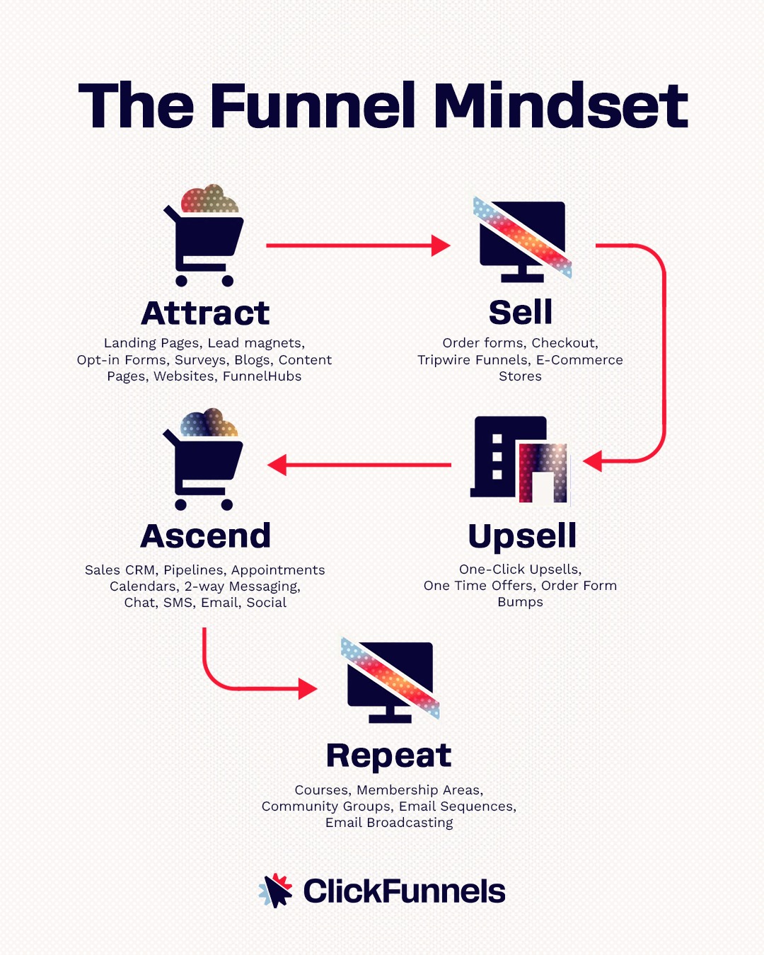 퍼널 사고방식은 모든 상호작용을 안내, 서비스 제공, 확장의 기회로 보는 것을 의미합니다.