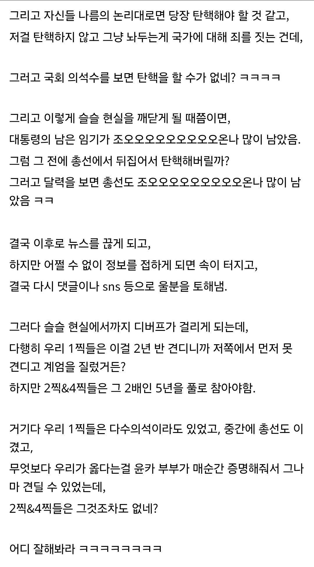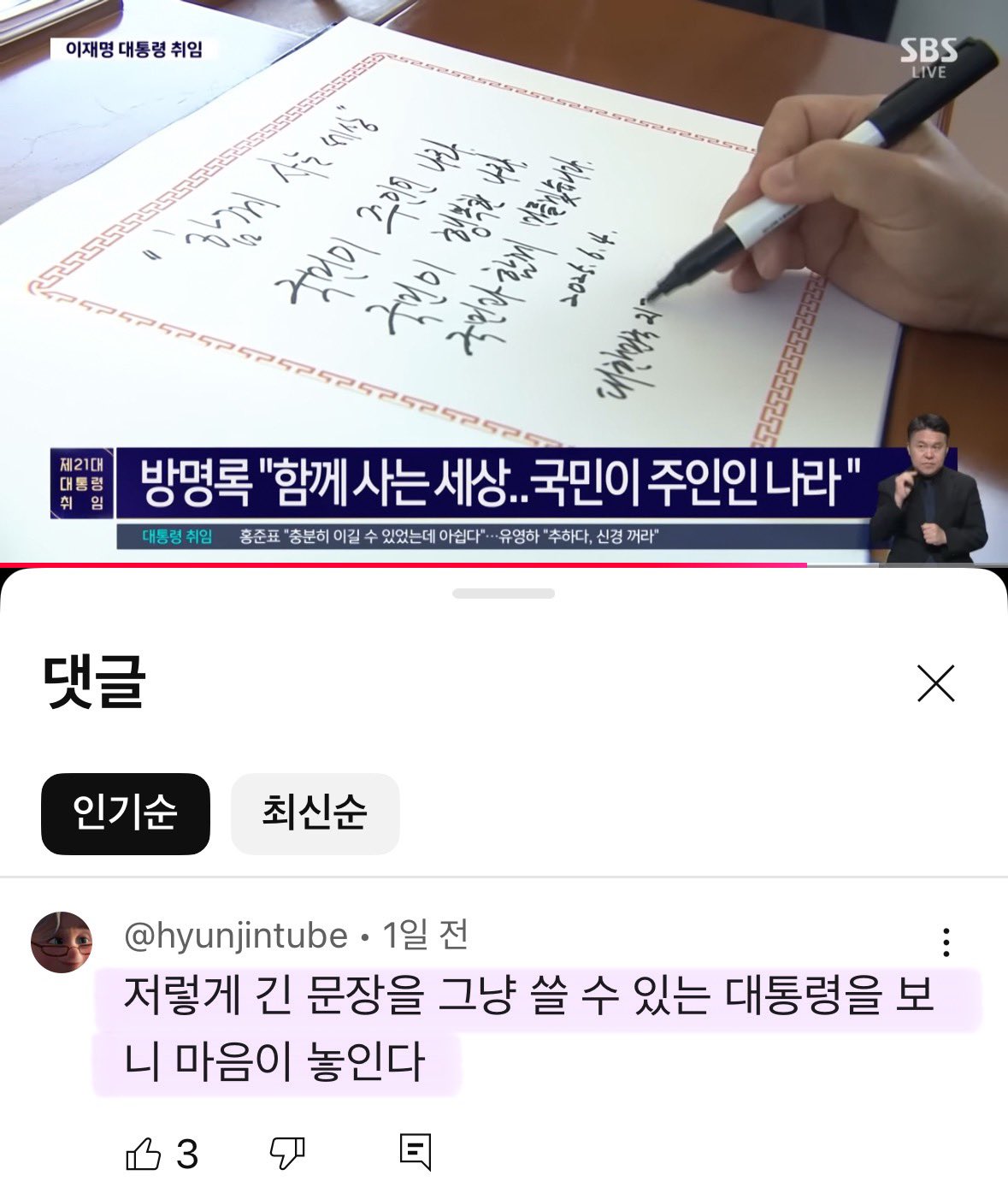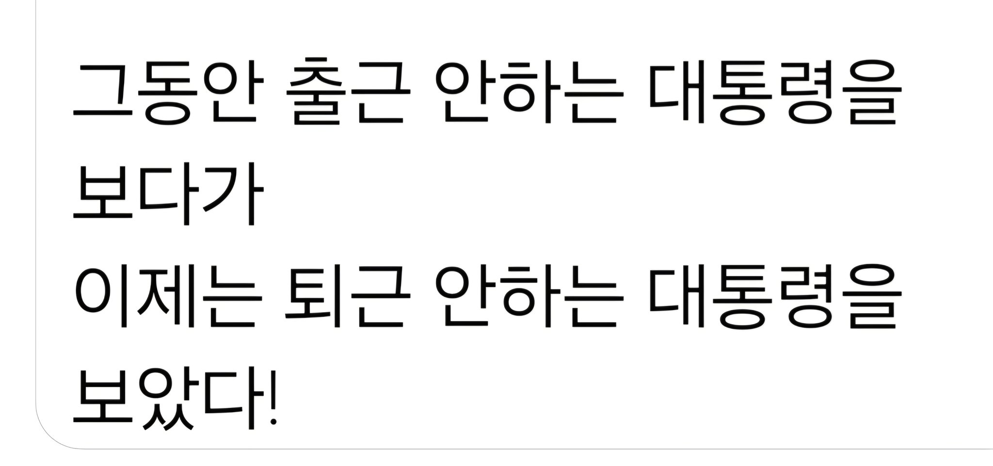 아.. 대통령이 연설하면서 미친듯이 대가리를 흔들지 않는다는 것만으로 이렇게 쾌적하다니. 😭