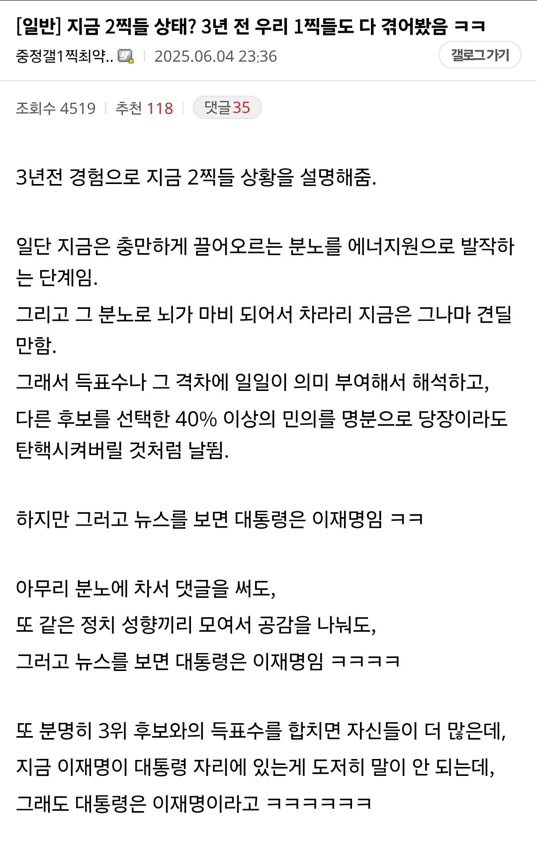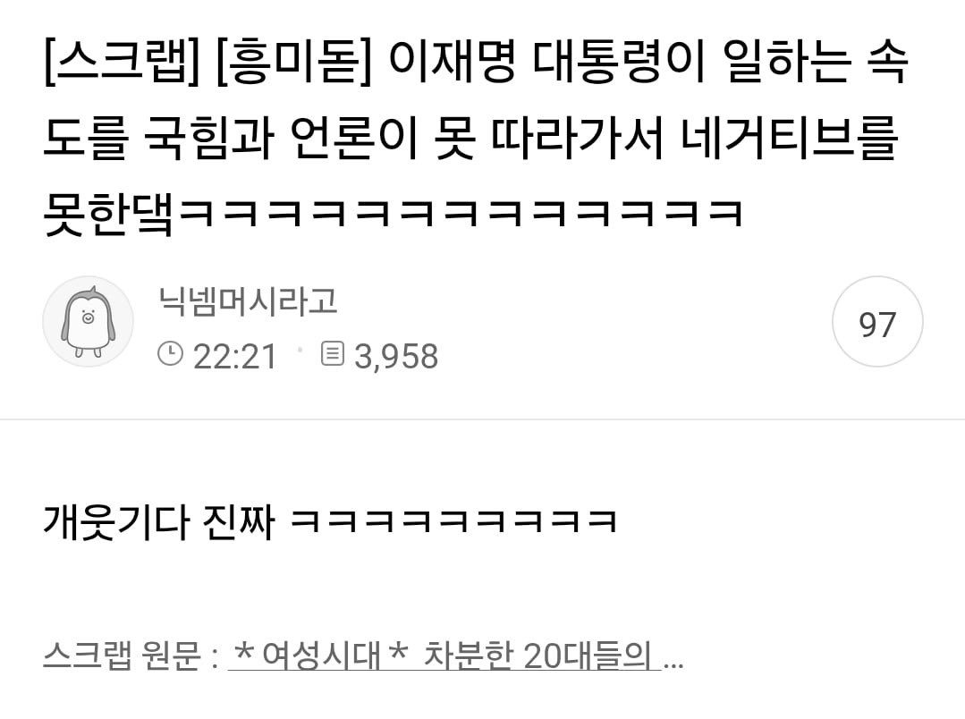 인상깊은 댓글 "윤석열은 출근했는지가 걱정이었는데 이재명은 퇴근했는지가 걱정된다"