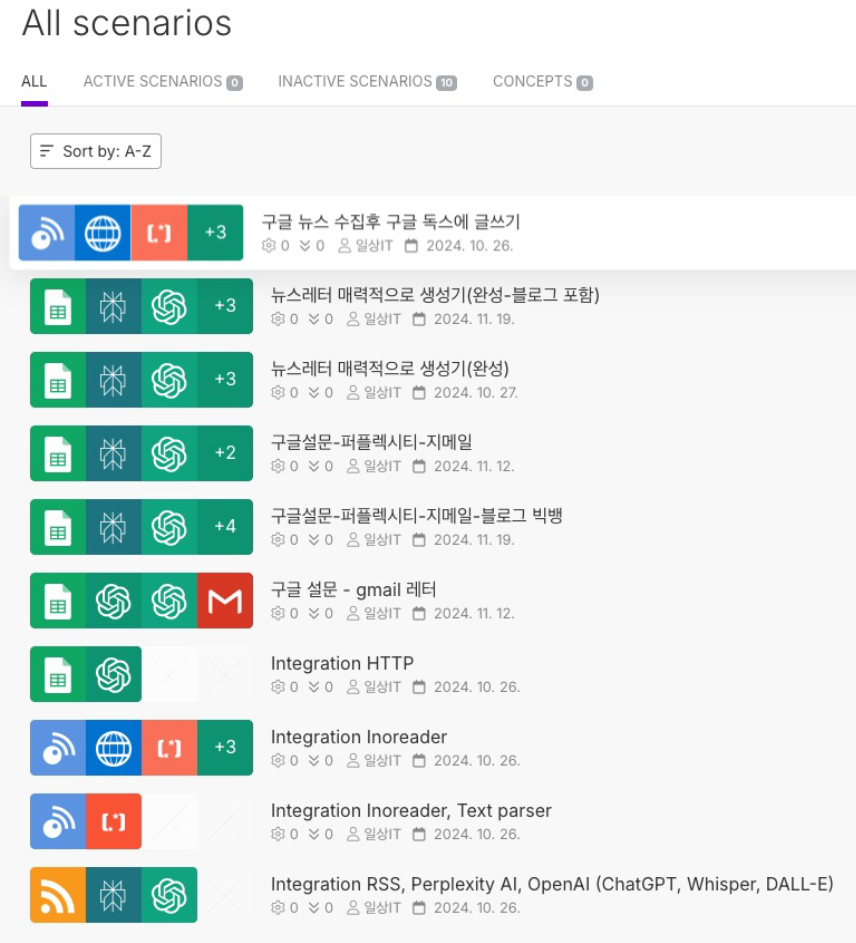 - 업무 자동화 Make를 활용하여 시나리오를 만들어야 한다. https://www.make.com/en