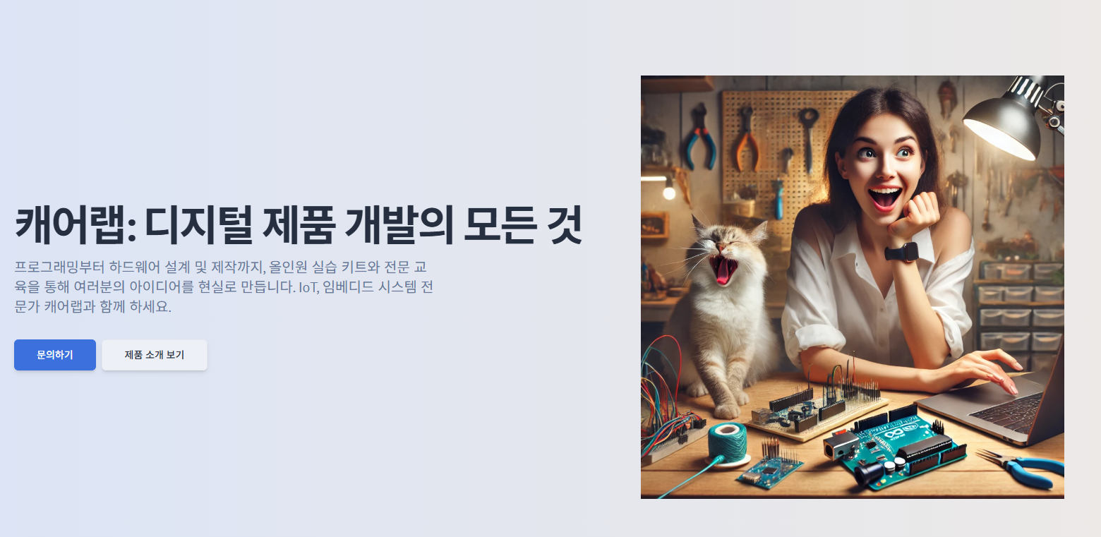 - 내용: 캐어랩이 주로 활용하거나 교육하는 핵심 기술들(예: 아두이노, 라즈베리파이, IoT, 임베디드 시스템, PCB 설계, Python, AI 등)을 아이콘과 함께 간략하게 소개하는 섹션입니다. 각 기술을 클릭하면 관련 제품이나 교육 상세 페이지로 연결할 수도 있습니다.