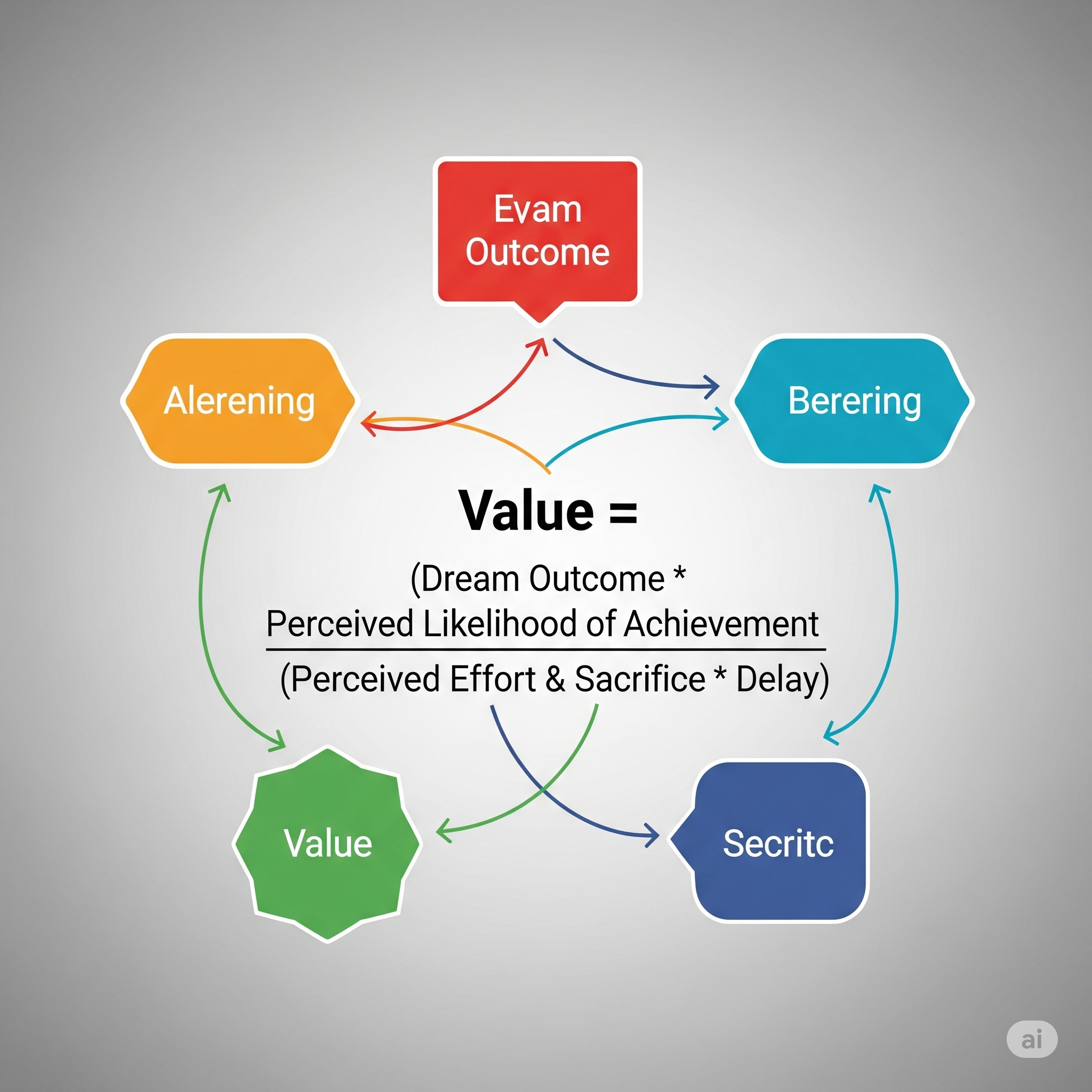 호모지는 고객이 "예"라고 말할 수밖에 없는 제안을 만드는 것이 중요하다고 강조합니다. 이를 위해 그는 '가치 방정식(Value Equation)'이라는 개념을 제시합니다.
