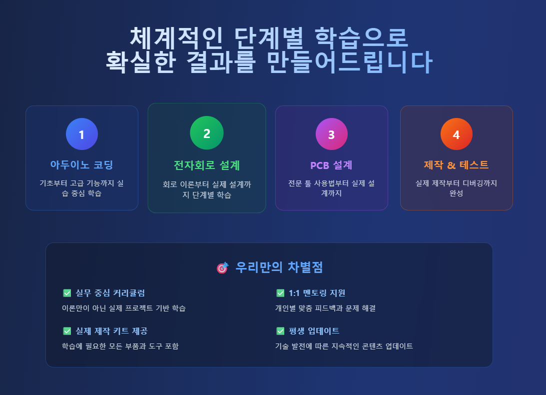 - PCB에 인쇄된 사용법으로 학습 효과 증대