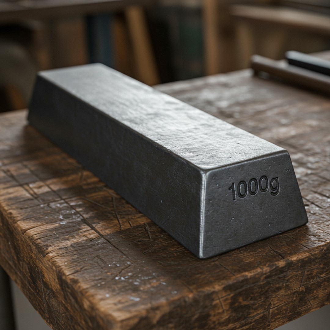 이것은 1,000그램의 철 토막입니다. 기본 가치는 약 $100입니다.