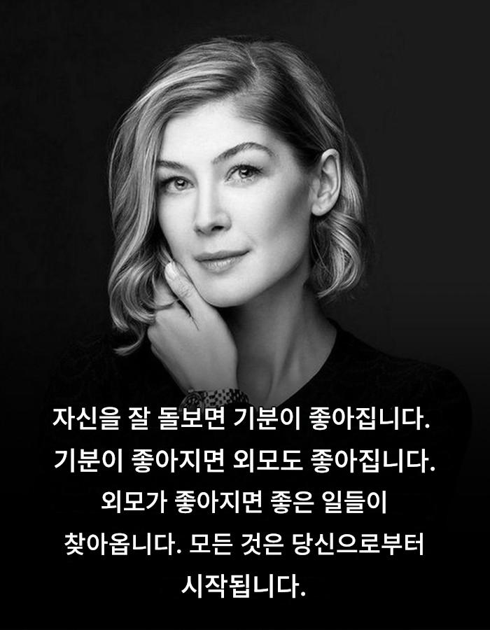 자신을 잘 돌보면 기분이 좋아집니다. 기분이 좋아지면 외모도 좋아집니다. 외모가 좋아지면 좋은 일들이 찾아옵니다. 모든 것은 당신으로부터 시작됩니다.