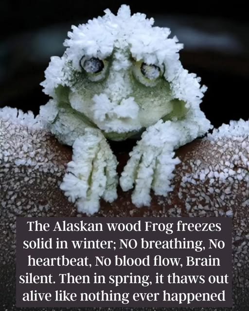 알래스카 나무 개구리 "Rana sylvatica"는 겨울을 견디기 위해 완전히 얼어붙는 방식으로 생존하며, 이는 cryoprotection '크리오프로텍션'이라고 불리는 놀라운 적응 메커니즘입니다.