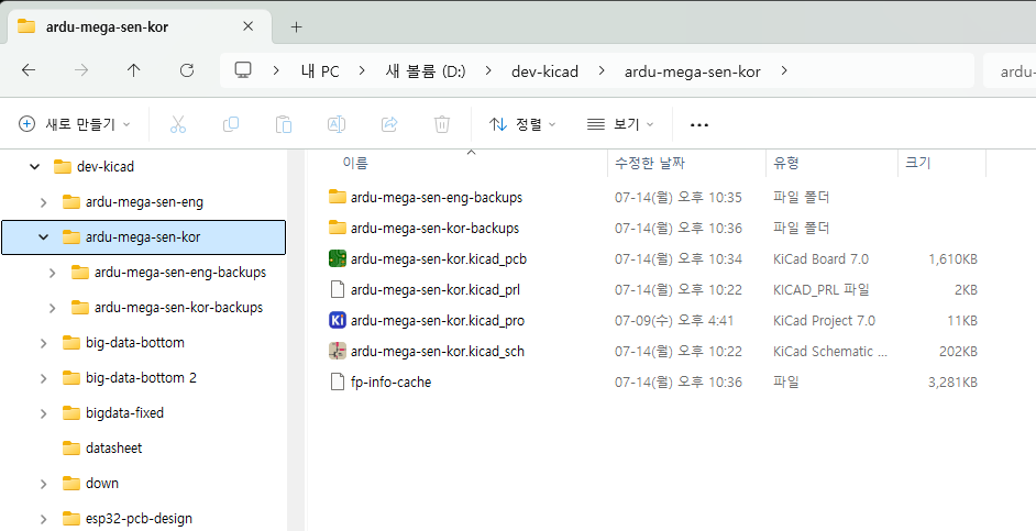 캐드 작업할 때 동일한 프로젝트를 반복한다든가, 대부분의 구성 요소가 같아서 복사할 게 많은 경우에 프로젝트를 통째로 복사하고 싶은 경우 아래와 같은 간단한 방법으로 한다. 저는 영문 PCB를 한글 PCB 설계로 변경할 때 이렇게 한다.