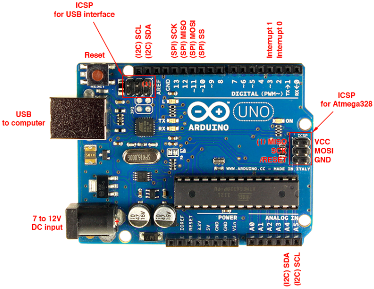 위의 아두이노 우노 그림을 보면 A4와 A5에 I2C통신 기능이 연결된 것을 알 수 있습니다.