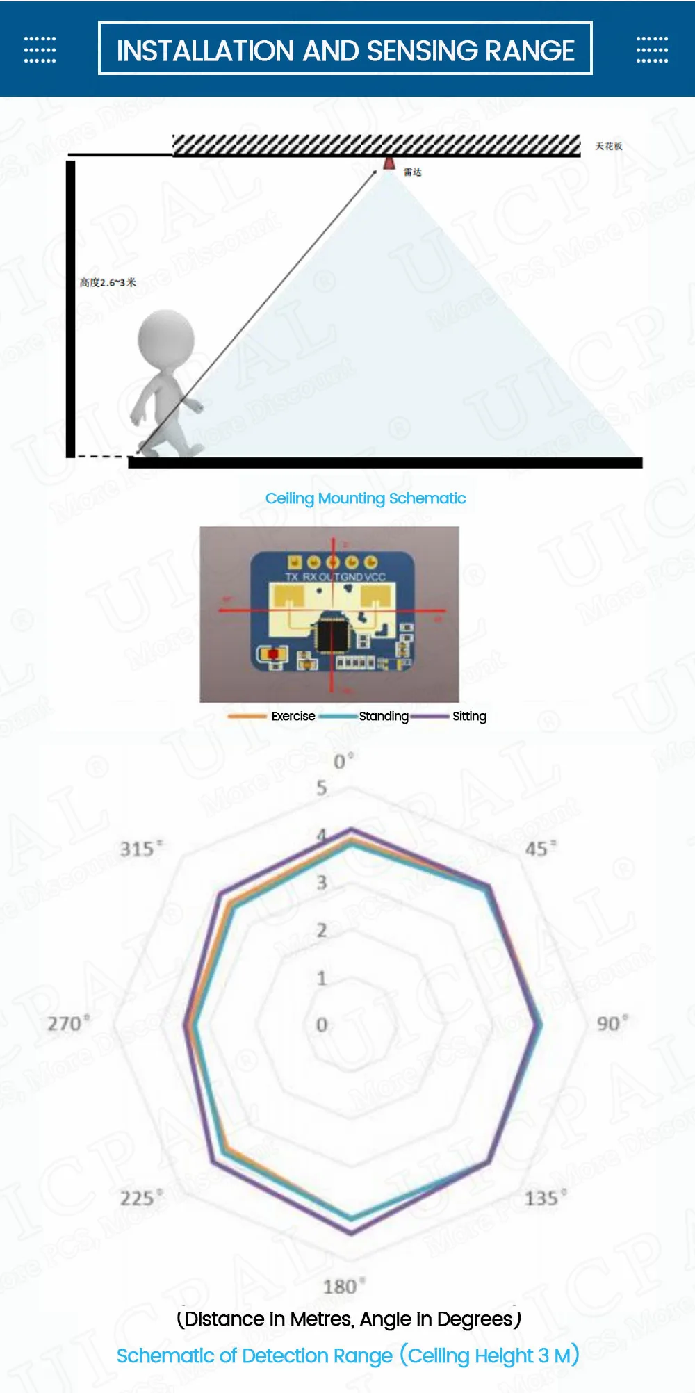 고정밀 LD2410C 24GHz 인간 존재 센서 FMCW 웨이브 레이더 유도 모듈 신체 심장 박동 감지 센서