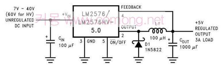 아래는 DC 5V 정전압 만들기 LM2576 회로입니다.