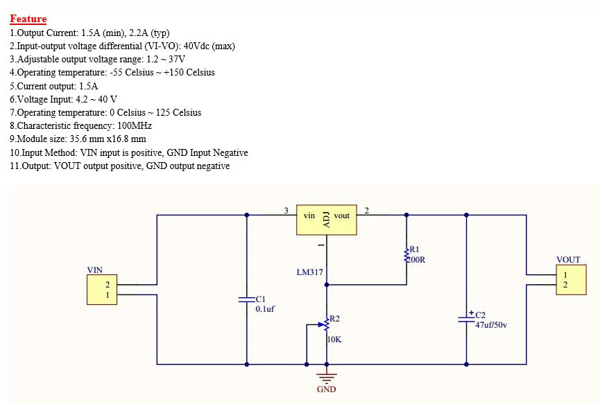 LM317 강하형 DC-DC 가변 선형 레귤레이터