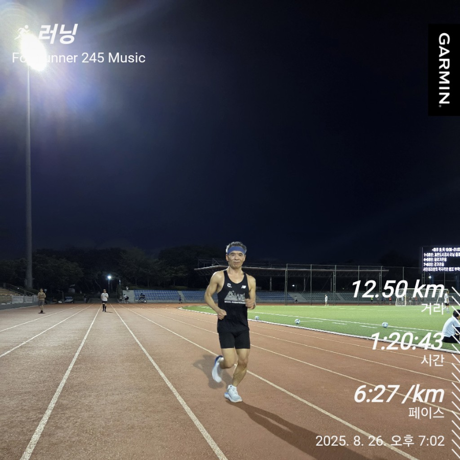 8월 26일 화요일 훈련, 12.5km, pace 6:27
