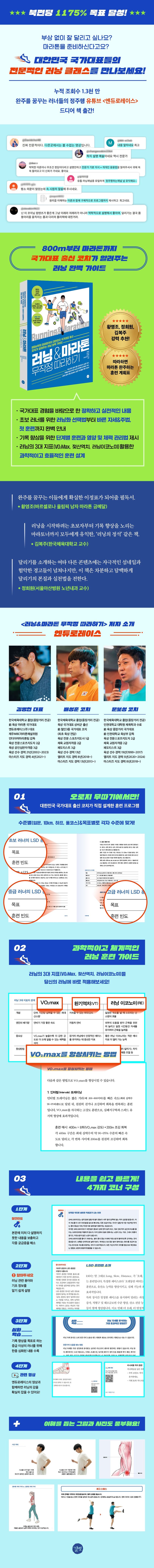 부상 없이 달리기를 오래 즐기고 싶은 러너, 기록을 향상시키며 자신의 한계에 도전하는 러너, 나만의 달리기를 완성하고 싶은 러너라면 이 책에서 가장 체계적이고 실전적인 러닝 가이드를 만나볼 수 있을 것이다.