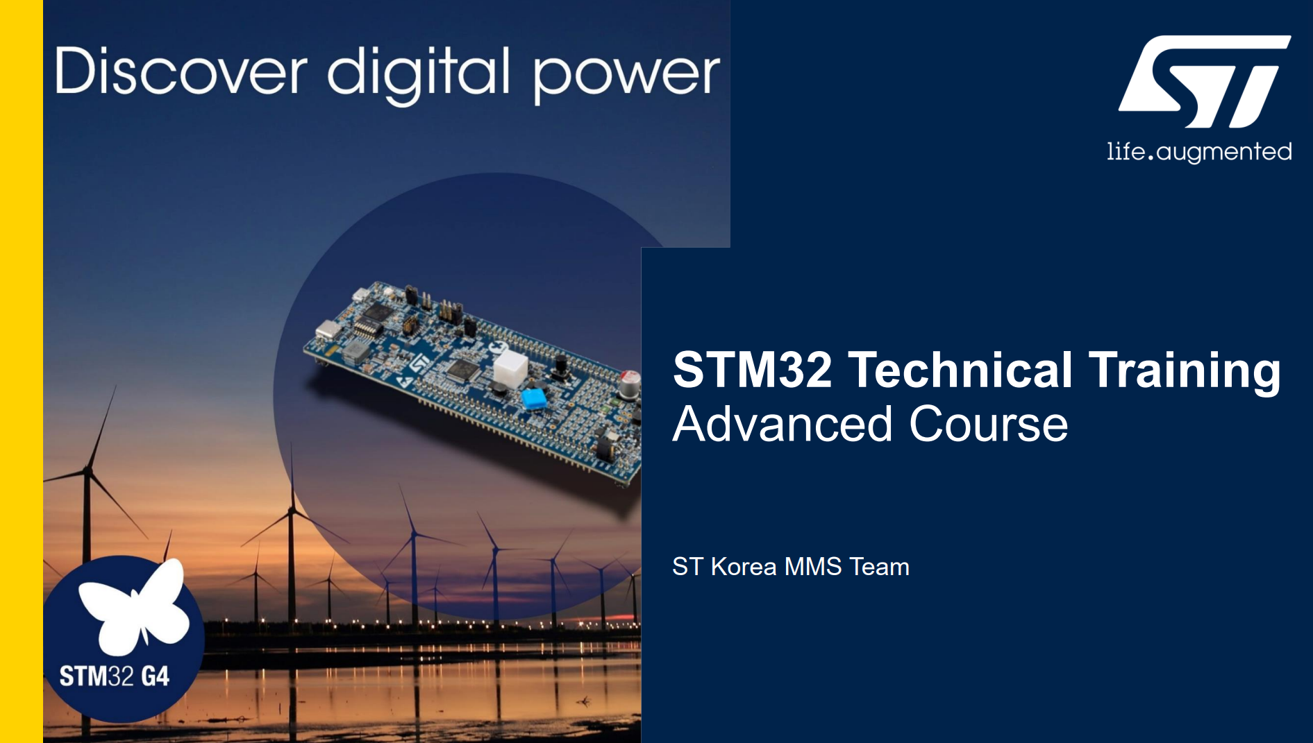 오프라인으로 진행되는 이번 트레이닝에서는 ST MCU 대한 기초지식을 바탕으로 STM32CubeMX 툴을 사용하여 STM32G4를 실습해 보실 수 있습니다. STM32G4의 다양한 peripheral에 대한 학습과 실습을 통해 STM32에 대한 이해를 향상할 수 있는 트레이닝 과정입니다.