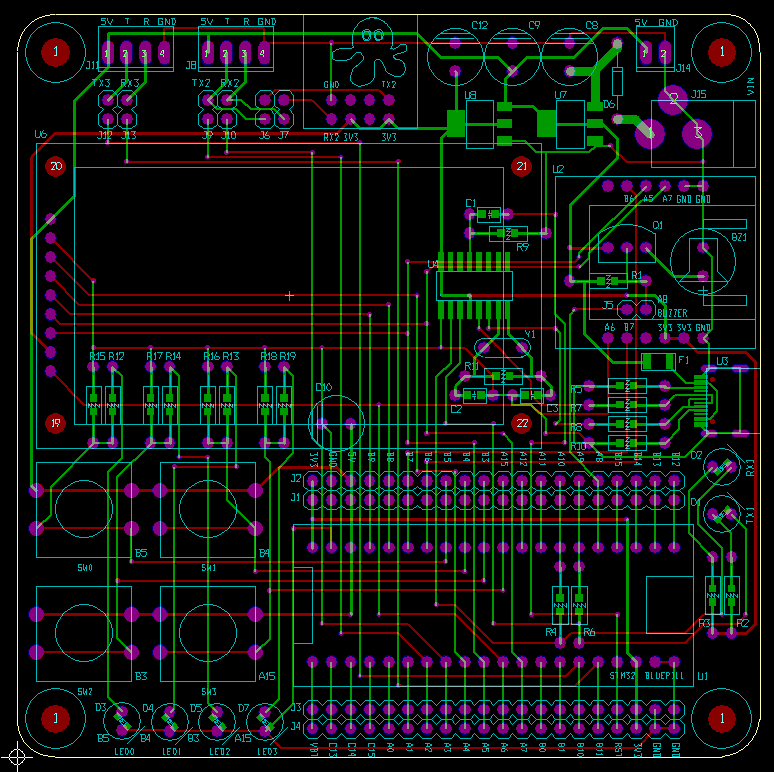 그리고 BLUE PILL 보드를 실습하기 위해서 별도에 확장 보드를 제작 했습니다.