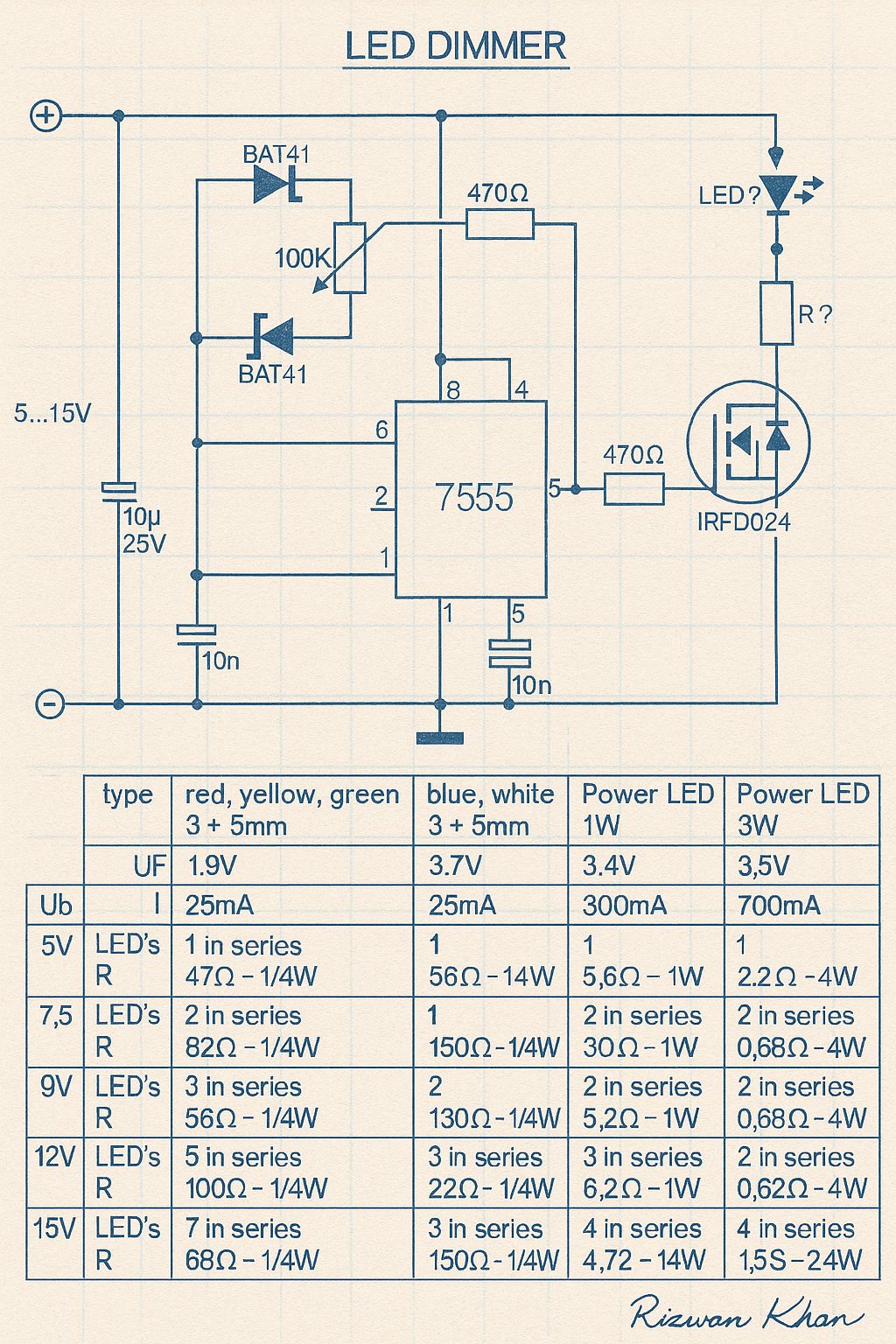 이 회로는 5V ~ 15V 범위의 DC 입력 전압으로 작동합니다.