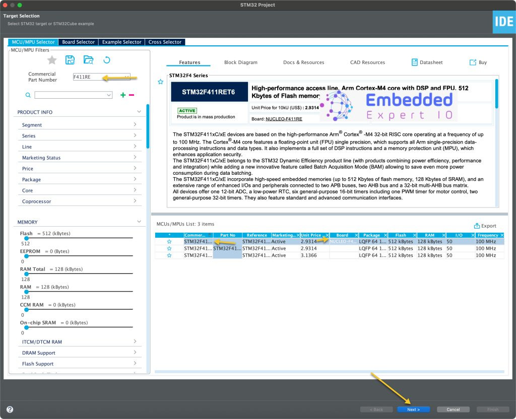 프로젝트가 생성되면 STM32CubeMX 창이 나타납니다.