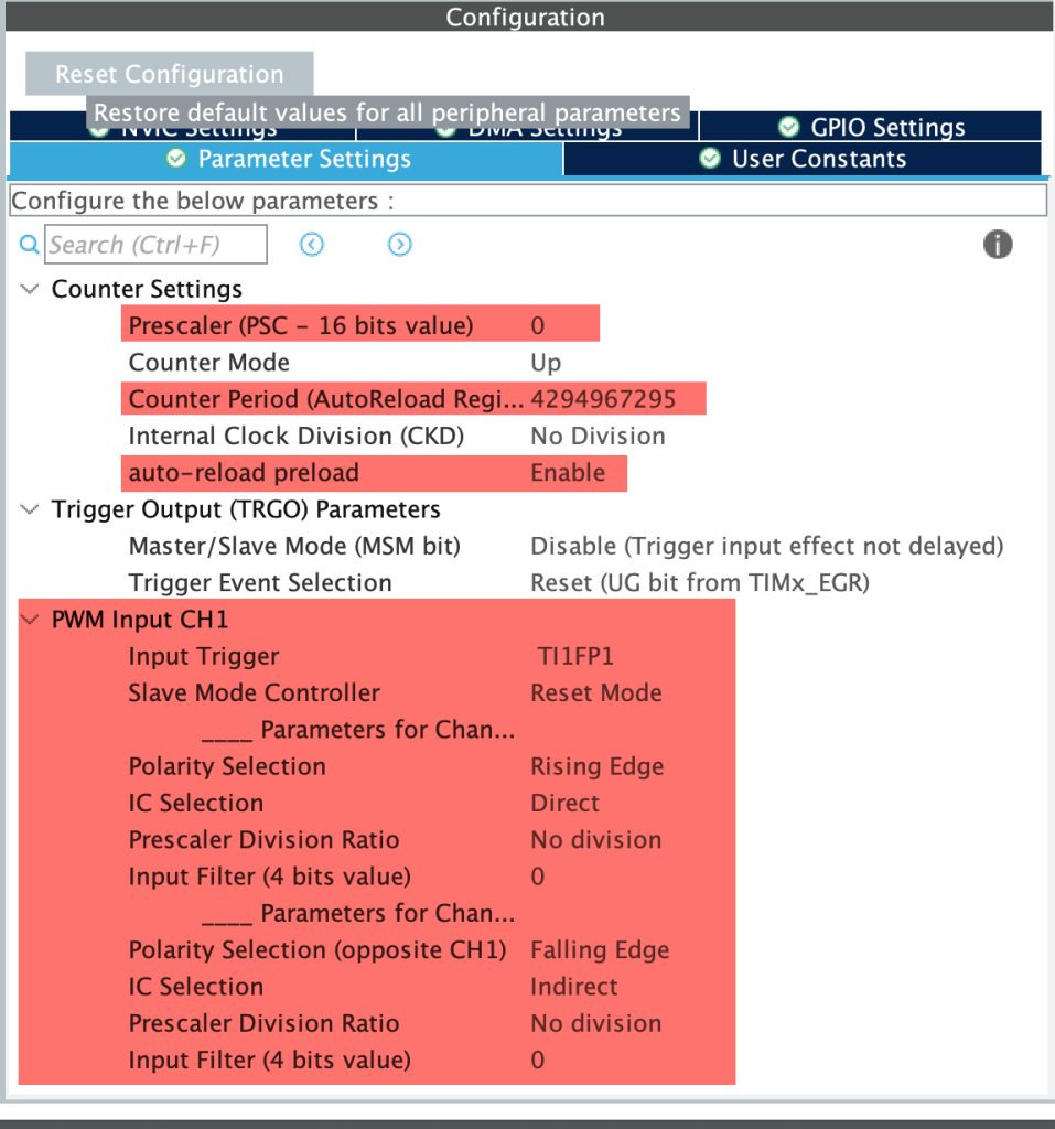 다음으로, TIM2를 PWM 입력 모드에서 작동하도록 구성하겠습니다.