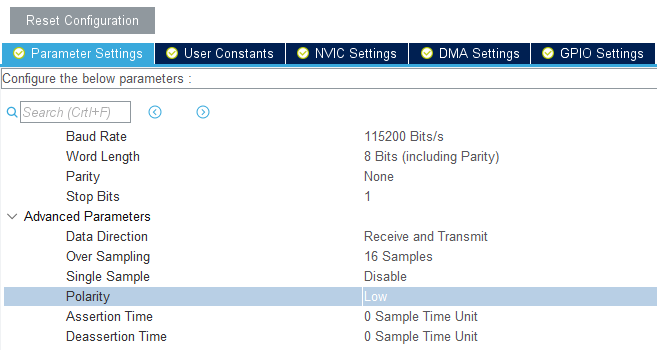 위의 회로에서는 TR을 사용해서 DE, RE 신호가 반전되므로 아래와 같이 Polarity만 Low 로 설정해 주면 된다.
