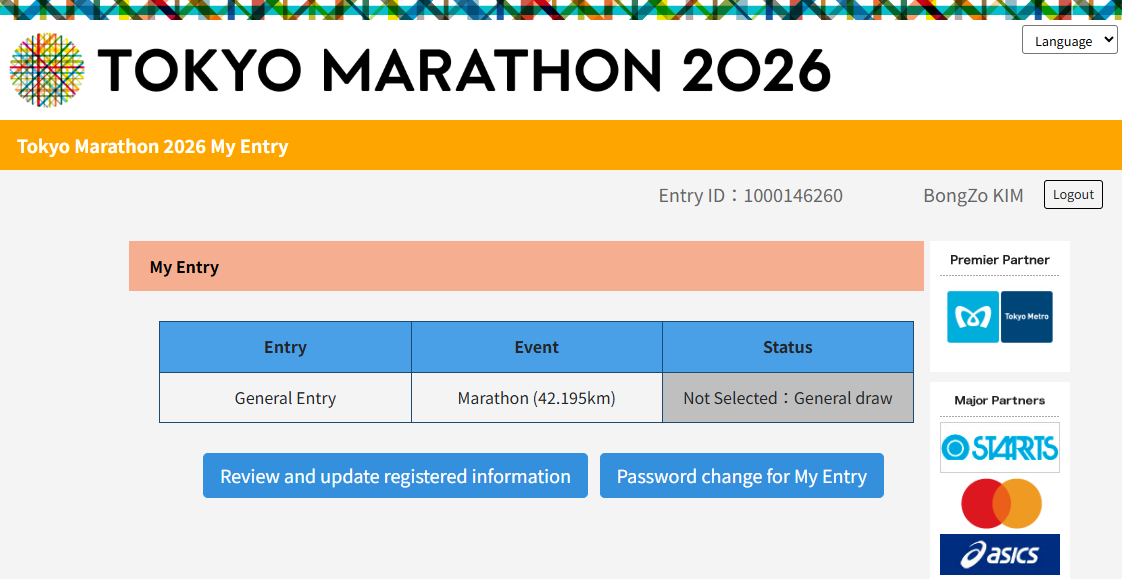 도쿄 일반 접수 탈락 4번째 탈락이다. 2020년 도쿄 올림픽 때부터 지원했지만 일반 신청으로는 계속 탈락이네.