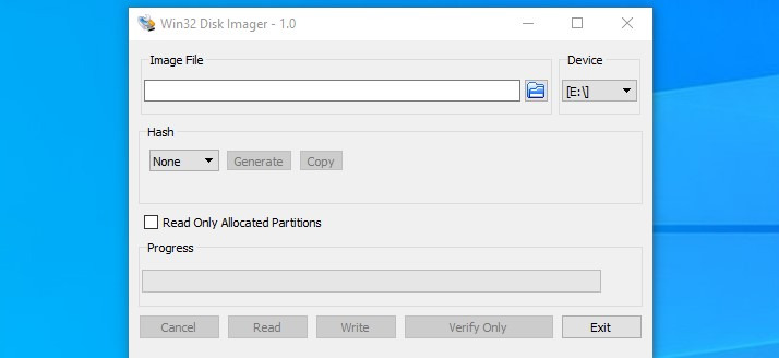 - Windows 사용자의 경우 Win32 Disk Imager를 사용합니다.