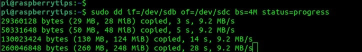 sudo dd if=/dev/sdb of=/dev/sdc bs=4M status=progress