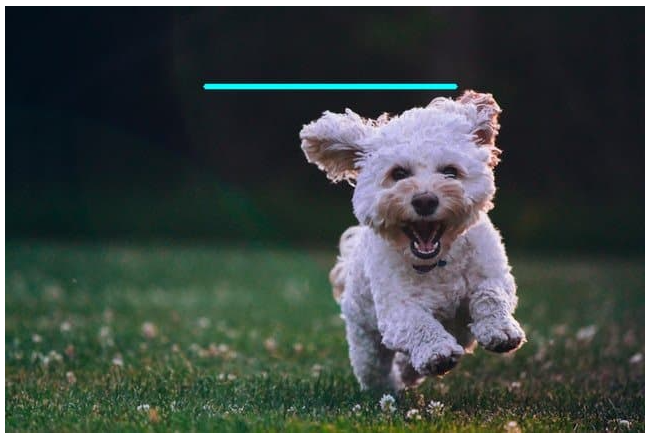 - 시작점과 끝점을 지정하여 이미지에 수평으로 250픽셀 길이의 선을 그립니다.
