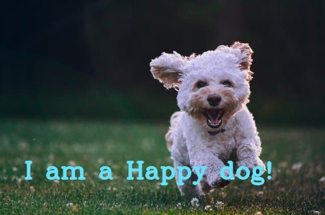 putText(imageText, "I am a Happy dog!", Point(50,350), FONT_HERSHEY_COMPLEX, 1.5, Scalar(250,225,100));