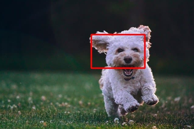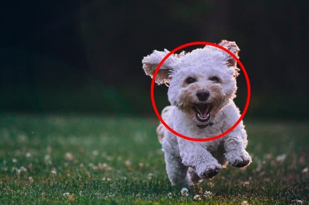 이 예에서 개 얼굴 주위에 빨간색 원으로 이미지에 주석을 달았습니다. 그런 다음 imshow() 함수를 사용하여 주석이 달린 이미지를 표시합니다.