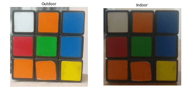 그림 1 : 서로 다른 조명에서 촬영한 동일한 큐브의 두 이미지