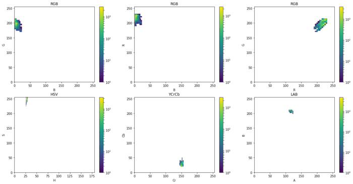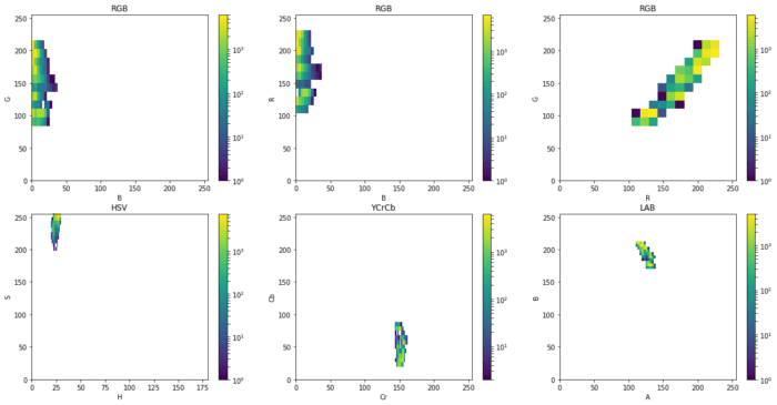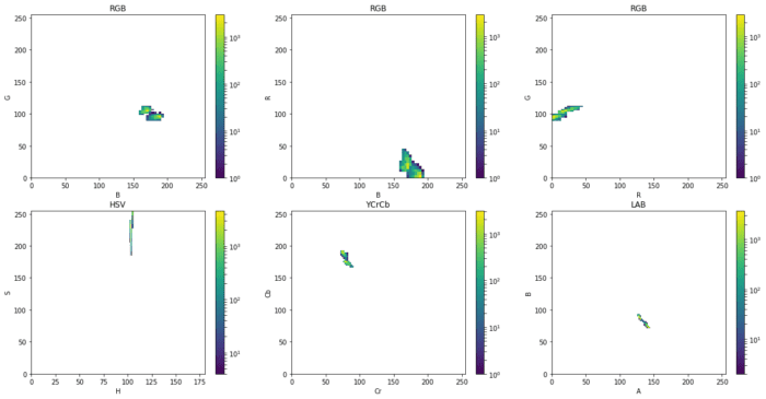 - YCrCb와 LAB 색공간을 비교해 보면 LAB 색공간의 밀도가 더 높습니다. 따라서 저에게는 LAB 색공간이 차선책입니다.