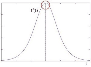 t의 함수로서 픽셀 강도의 1차 미분 그래프, t의 함수로서 픽셀 강도의 1차 도함수( 출처 )