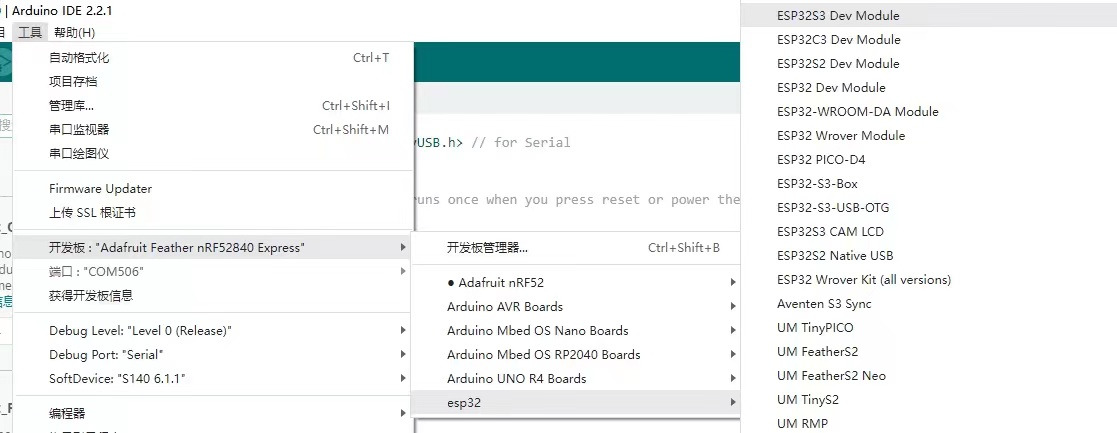 다운로드 모드 진입: 방법 1: BOOT 버튼을 길게 눌러 전원을 켭니다. 방법 2: ESP32S3의 BOOT 버튼을 길게 누른 후 RESET 버튼을 누르고, RESET 버튼에서 손을 떼고, BOOT 버튼에서 손을 뗍니다. 그러면 ESP32S3가 다운로드 모드로 진입합니다. (연결할 때마다 다운로드 모드로 다시 진입해야 합니다. 경우에 따라 다시 누르면 포트가 불안정해져 연결이 끊어질 수 있습니다. 포트 식별음이 들립니다.)