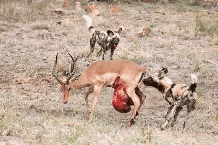 사바나는 동정을 모르는 법이다. 사진 속 임팔라는 상처 입은 채 서 있고, 목마른 땅에 생명의 피를 흘리지만 다리는 여전히 항복을 거부한다. 주변을 맴도는 야생 개들은 훈련되고, 끈질기며, 무자비하다. 피할 수 없는 운명이 공기 속에 가득하다. 언덕 너머로 기병대가 달려오지도, 포식자들이 동정 어린 멈춤을 보이지도, 마지막 순간의 기적도 없을 것이다. 임팔라의 운명은 오직 떨리는 몸에 남은 힘에 달려 있다.