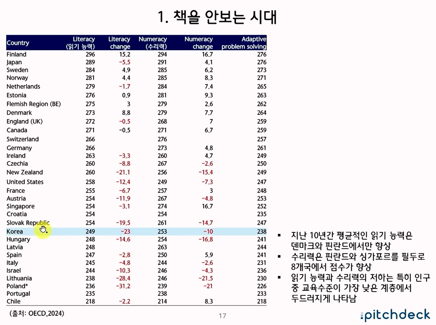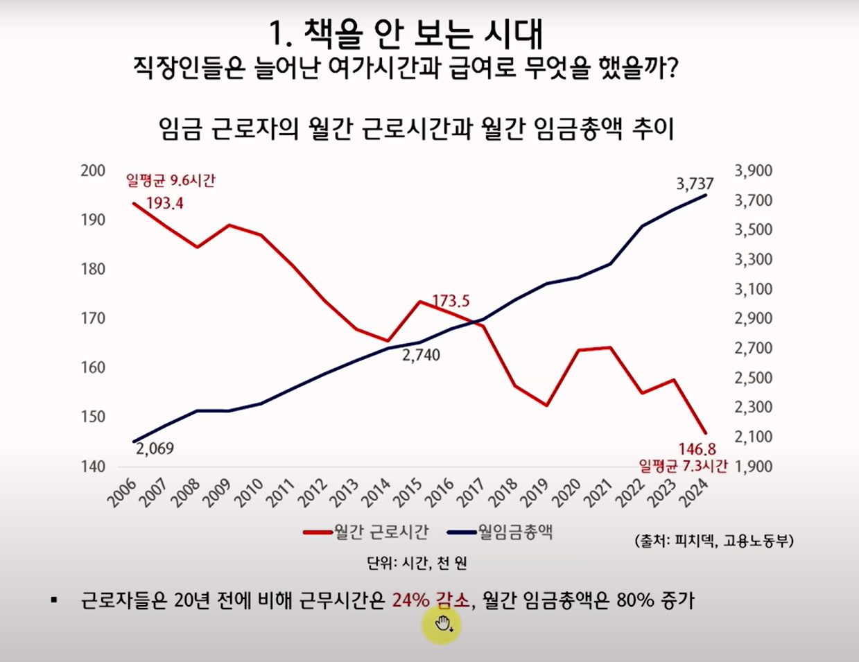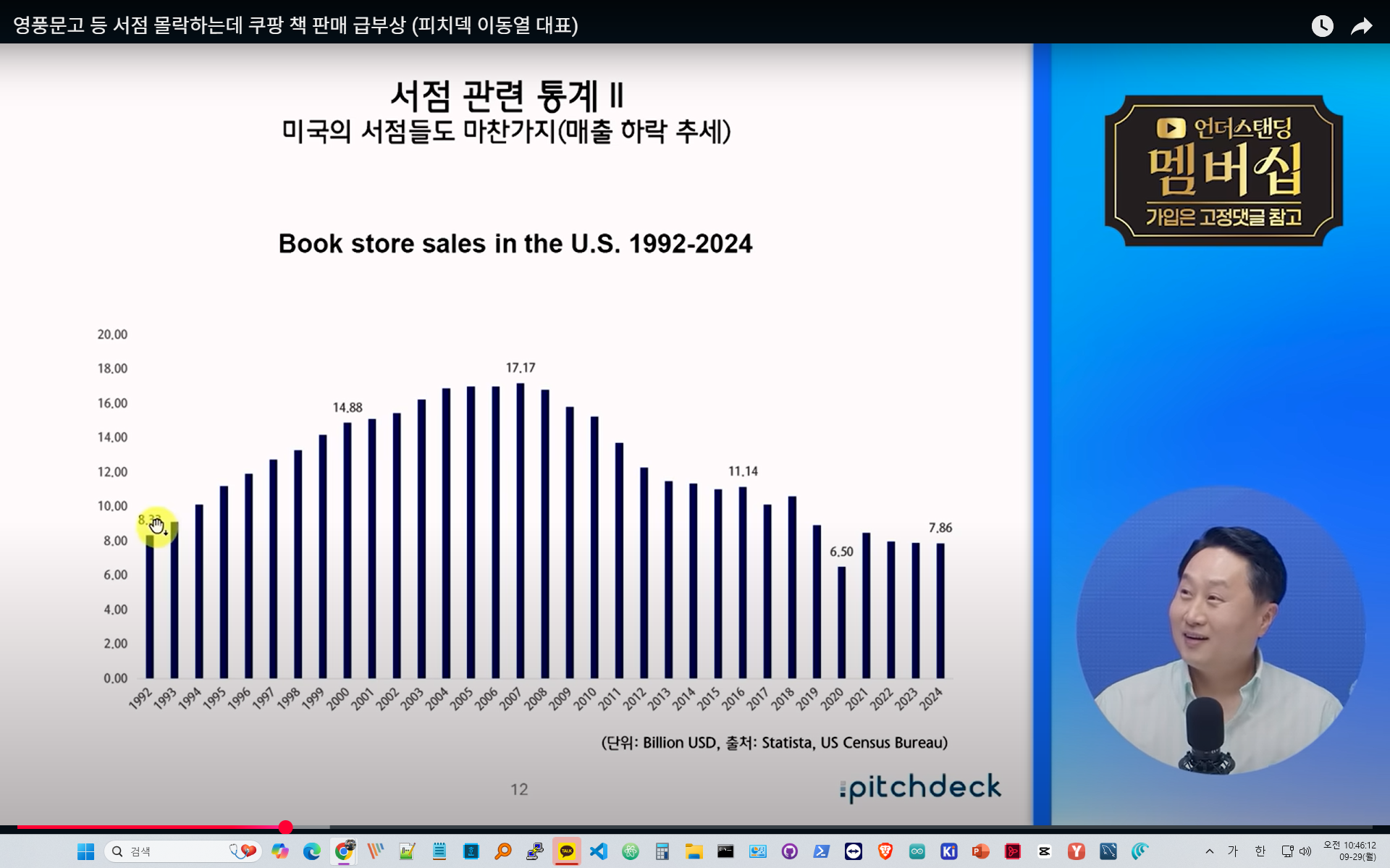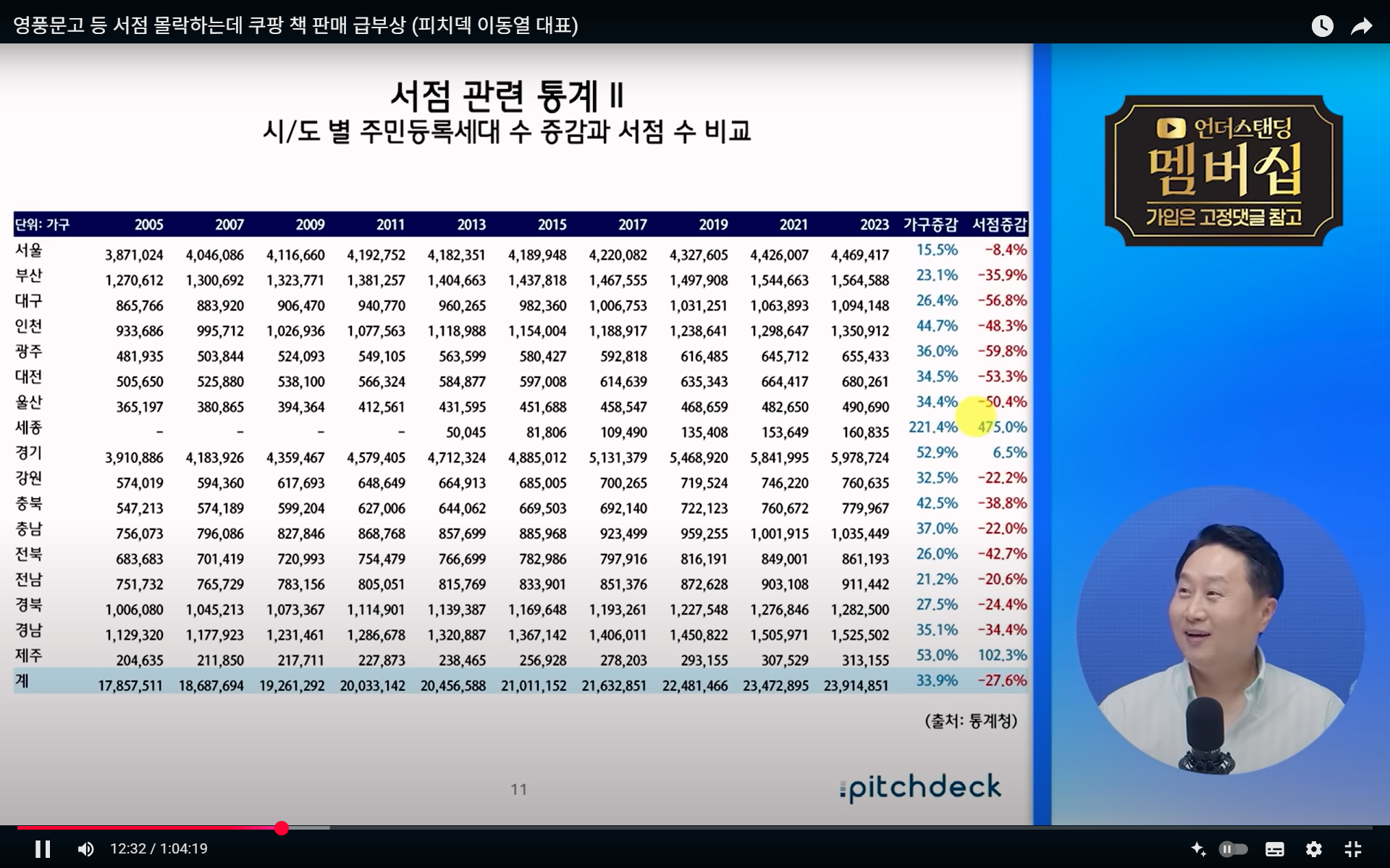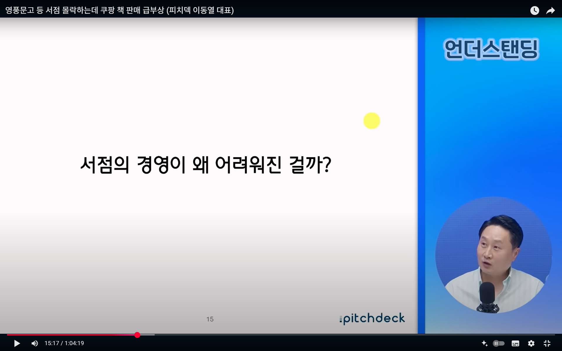 최근 서점 산업의 전반적 위기를 다룬 내용입니다. 2000년대 이후 대형서점의 전성기가 지나면서 지역 서점이 급격히 줄었고, 최근에는 온라인 서점과 쿠팡 같은 커머스 기업이 시장을 잠식하고 있습니다.