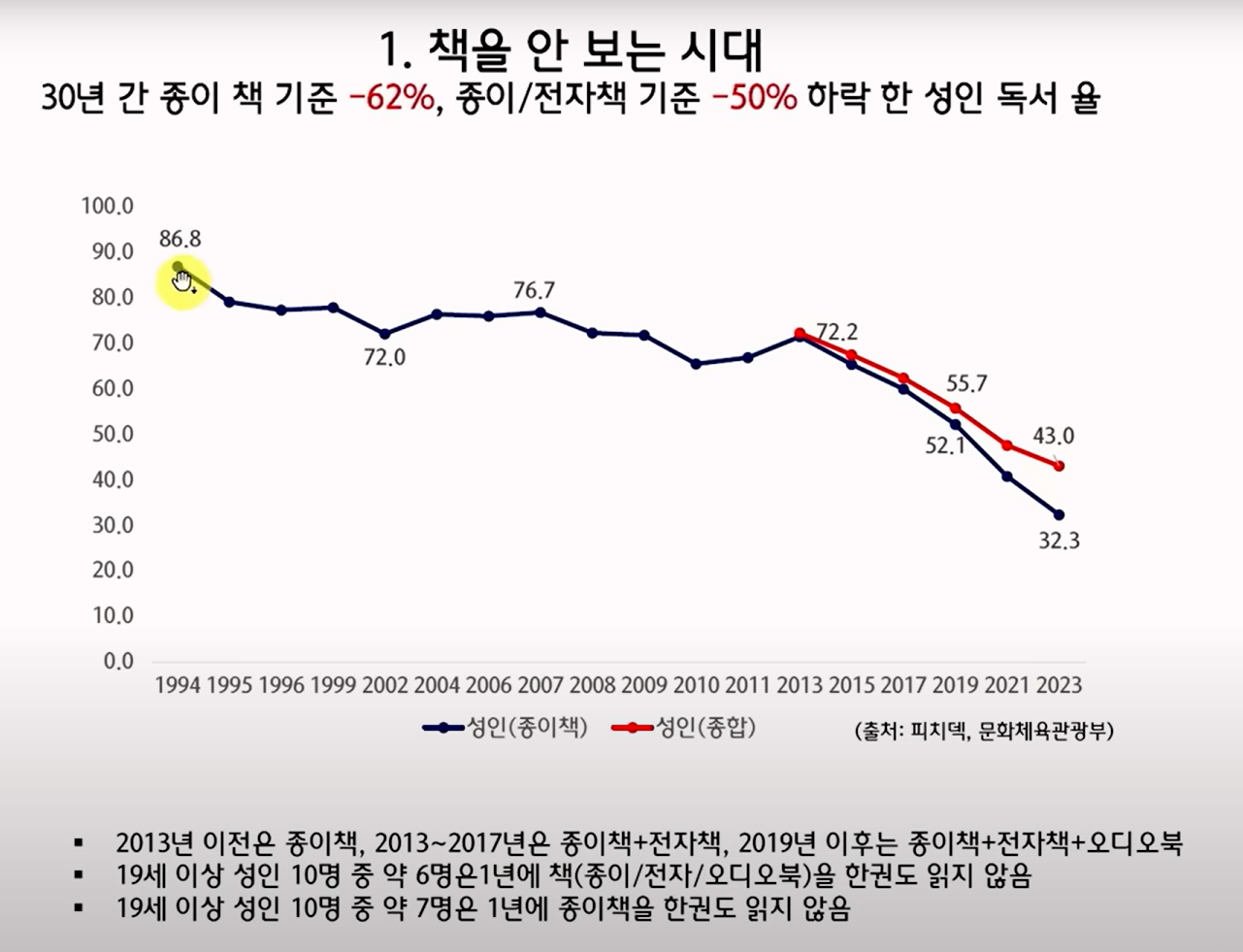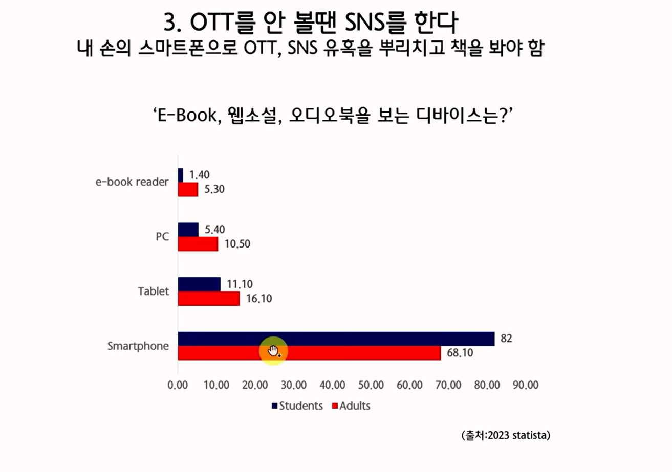 독서율 급감과 OTT·SNS 소비 증가로 인한 책 소비 감소