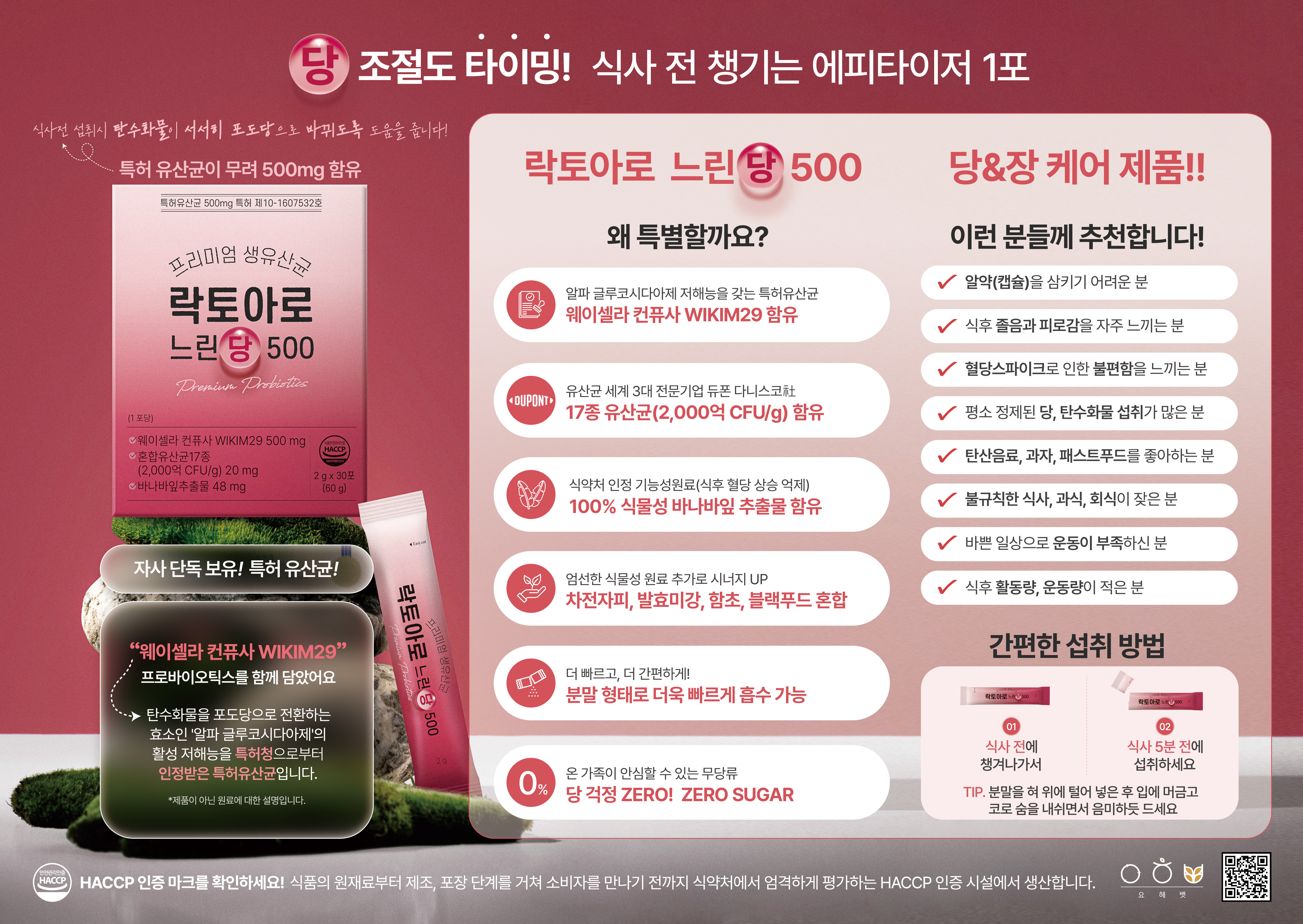 장 건강과 혈당 관리를 한 번에! '프리미엄 생유산균 락토아로 느린당500'