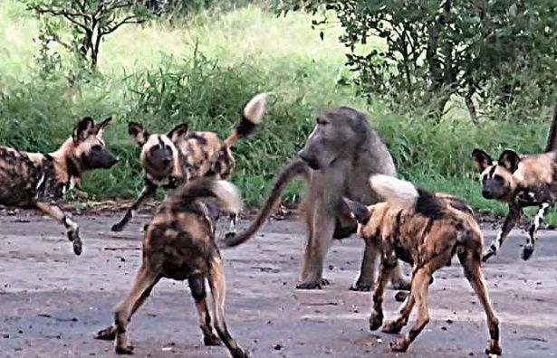 외로운 개코원숭이 한 마리가 굶주린 야생 개 떼에게 포위당했습니다. 개들은 먹이가 필요했고, 개코원숭이는 손쉬운 먹이처럼 보였습니다. 하지만 그다음에 펼쳐진 이야기는 근육의 이야기가 아니라 정신의 이야기였습니다.