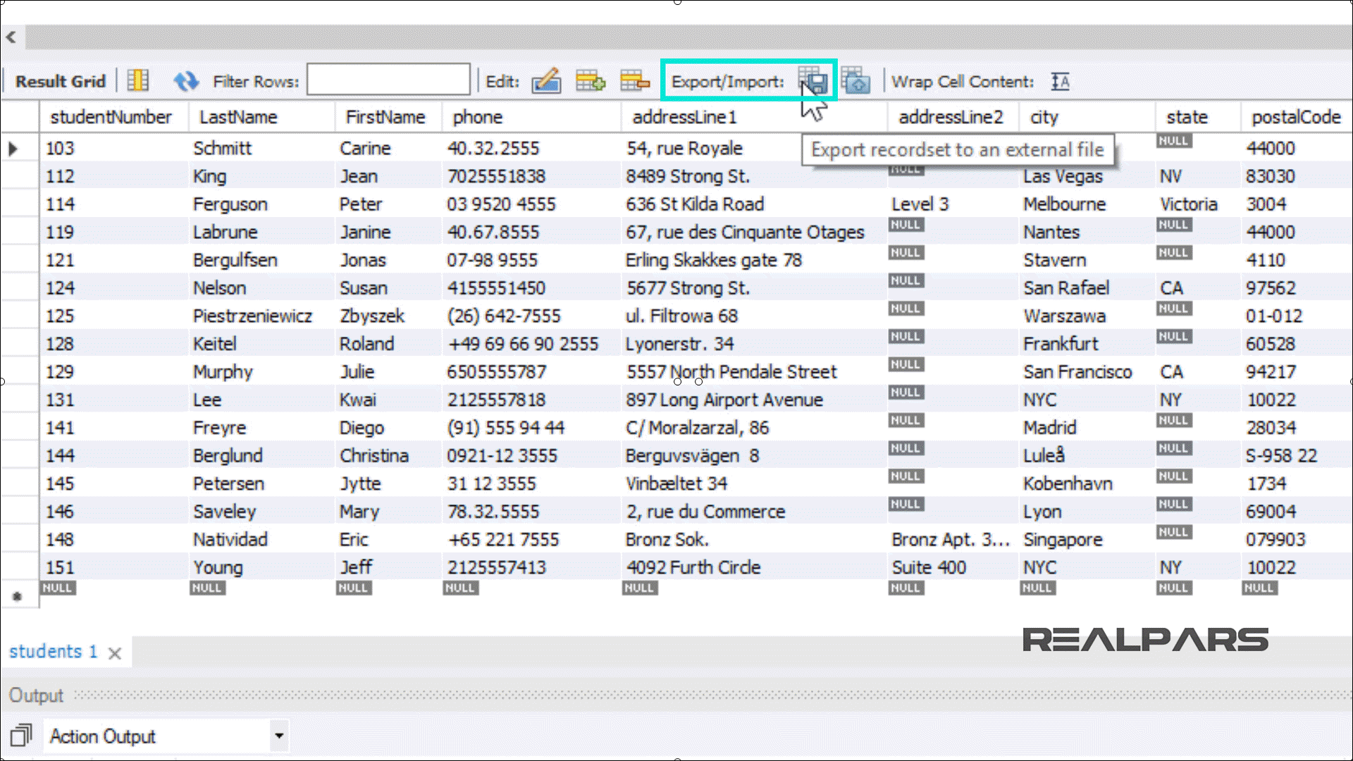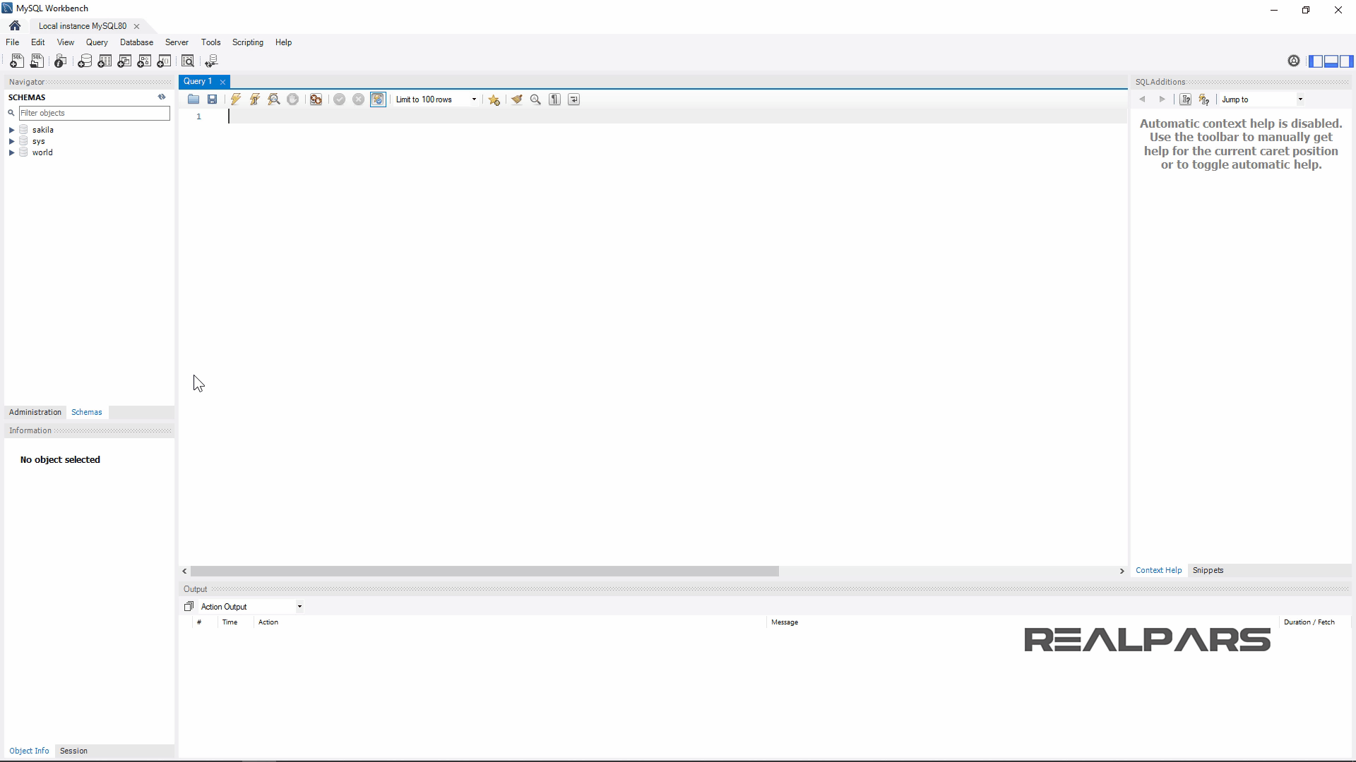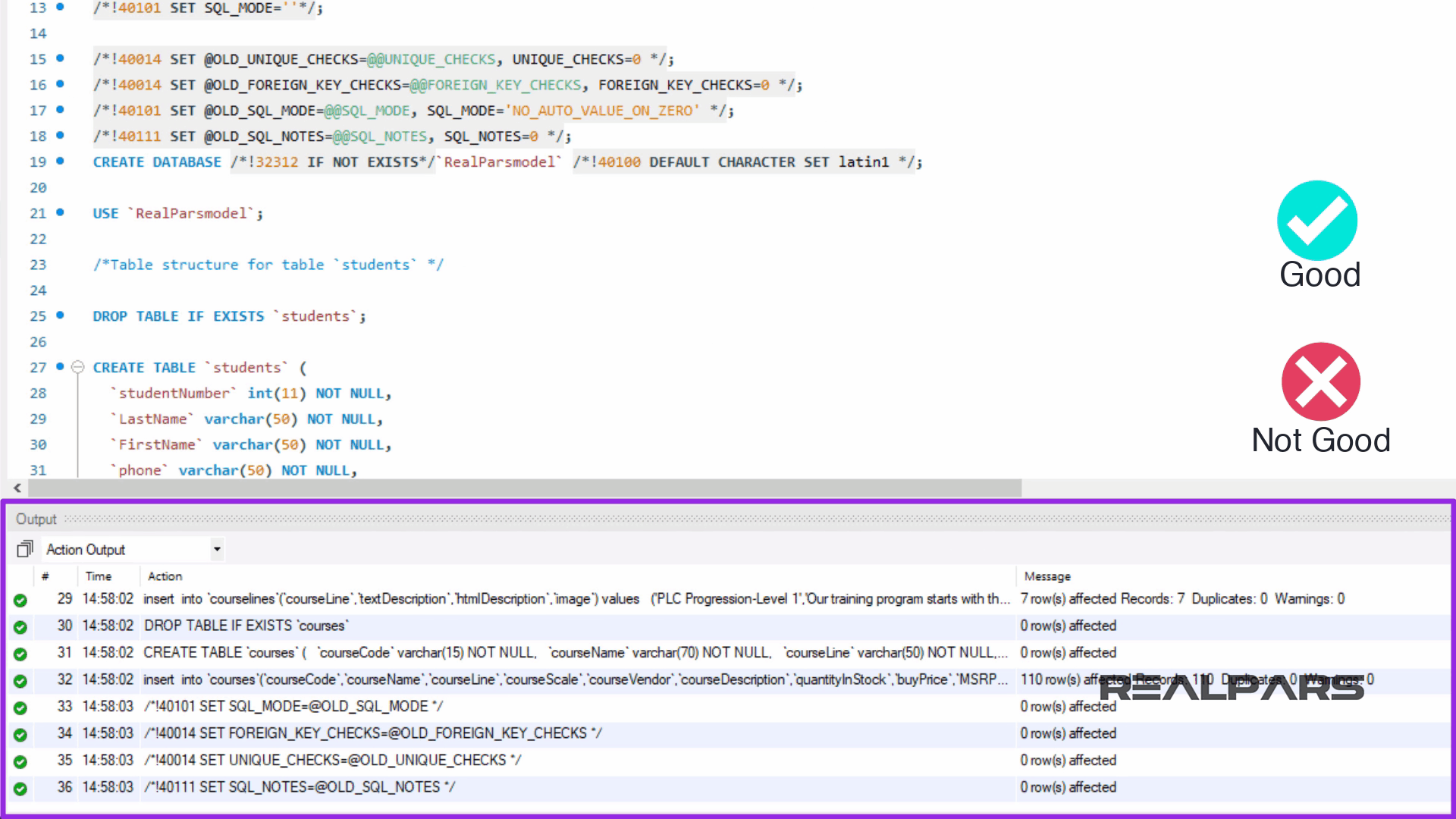 이제 스크립트를 실행하여 RealPars 데이터베이스를 생성해 보겠습니다.