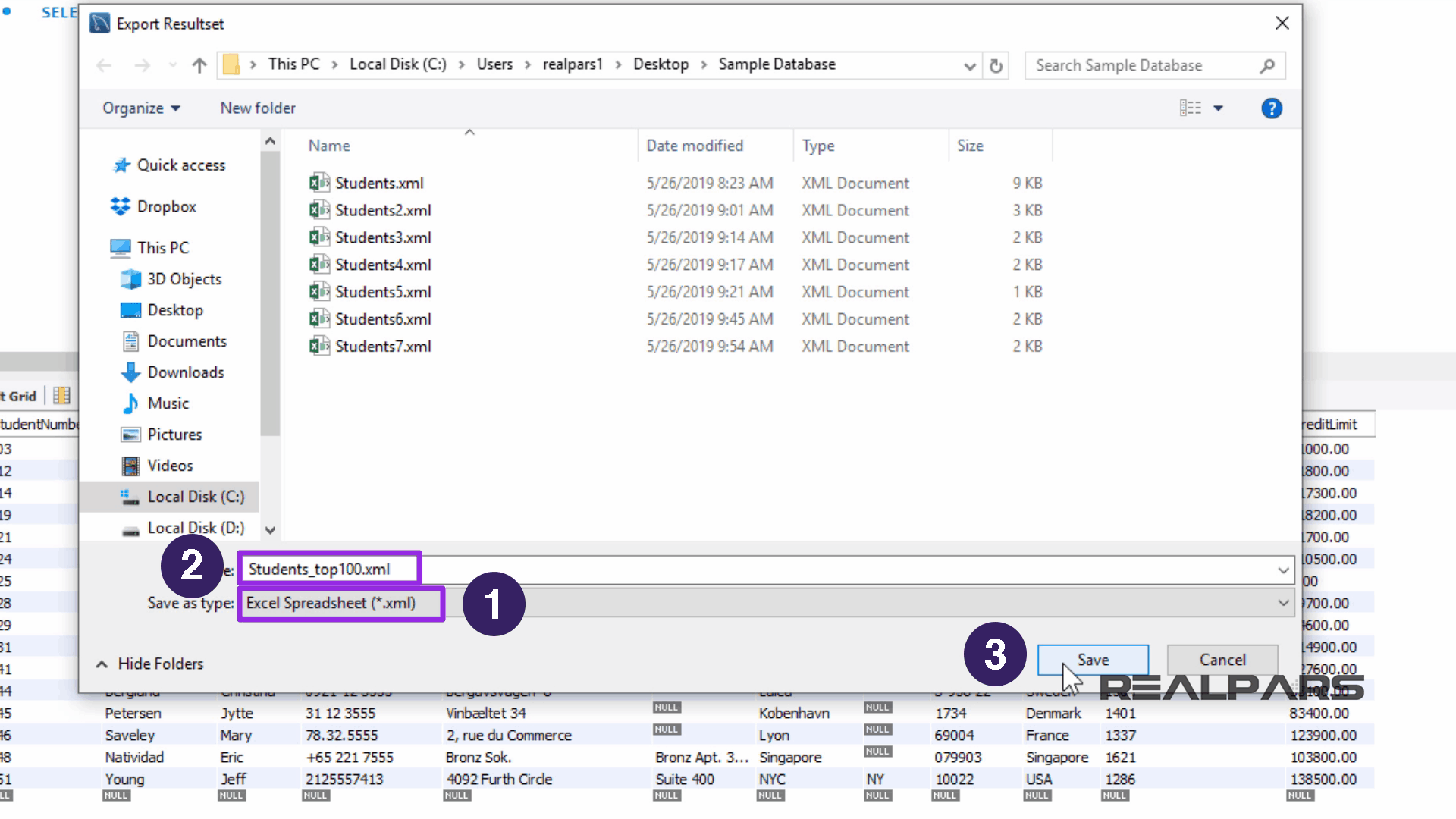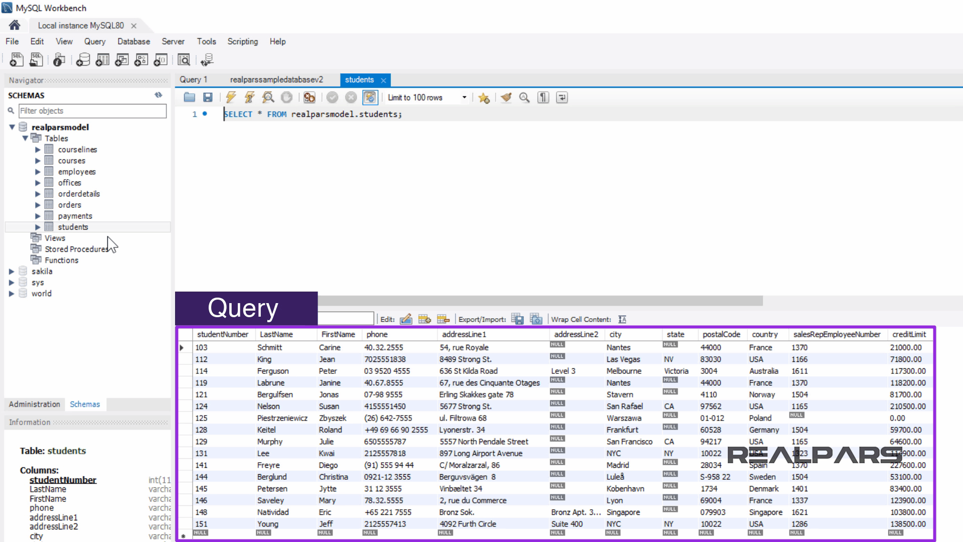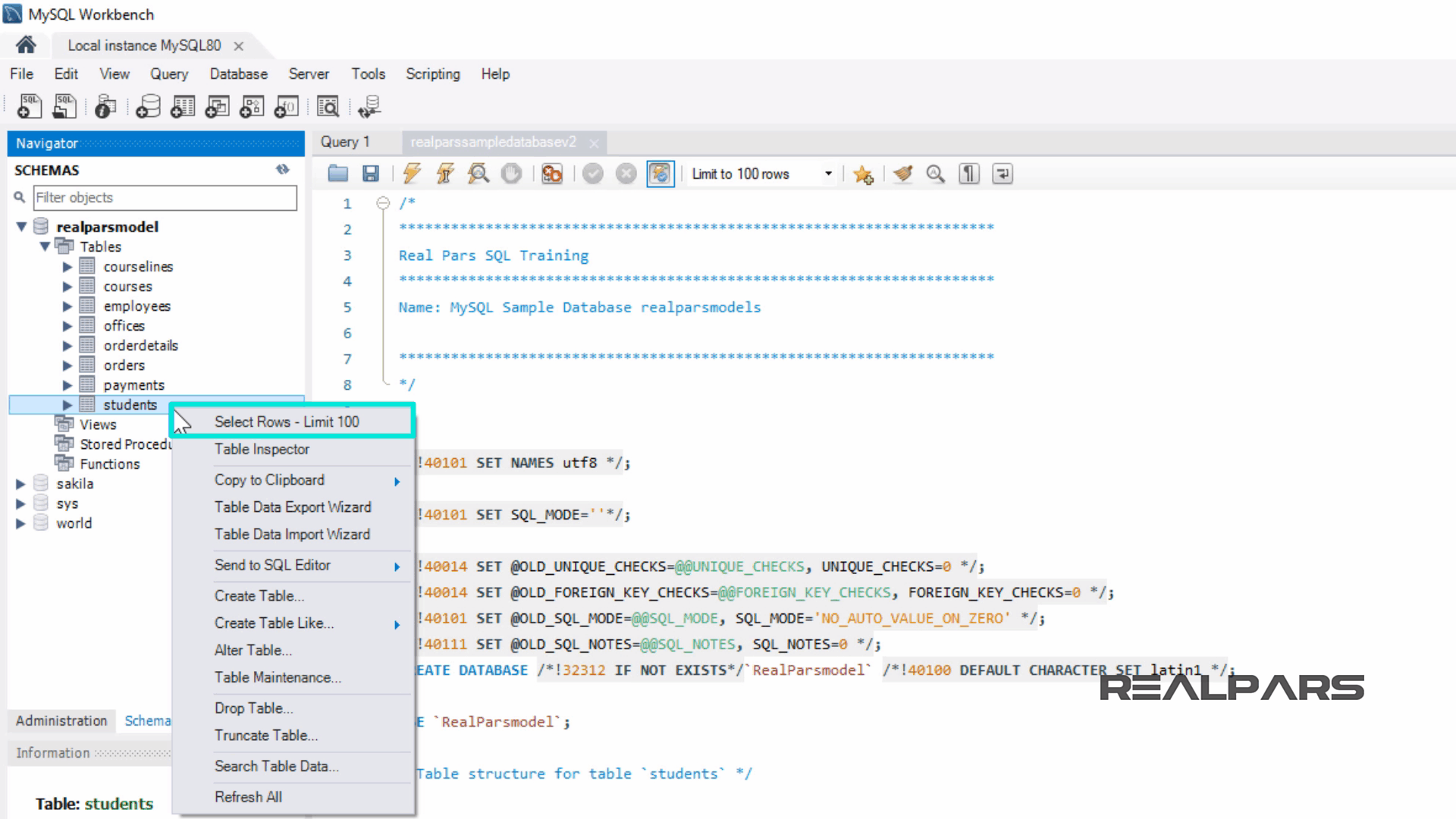 realparssampledatabasev2.sql 이라는 스크립트를 열어보겠습니다 .