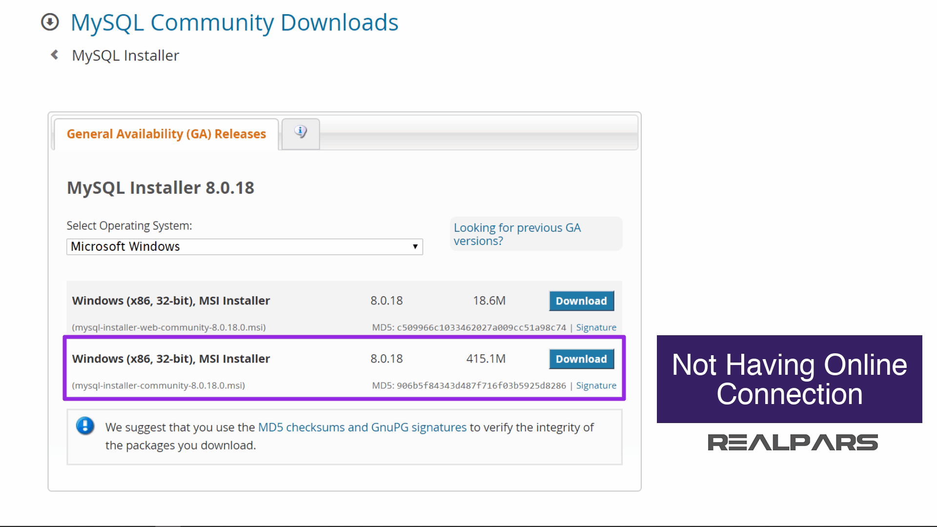 MySQL 설치 프로그램을 실행하는 동안 온라인에 연결되어 있지 않으면 mysql-installer-community 파일을 선택하세요.