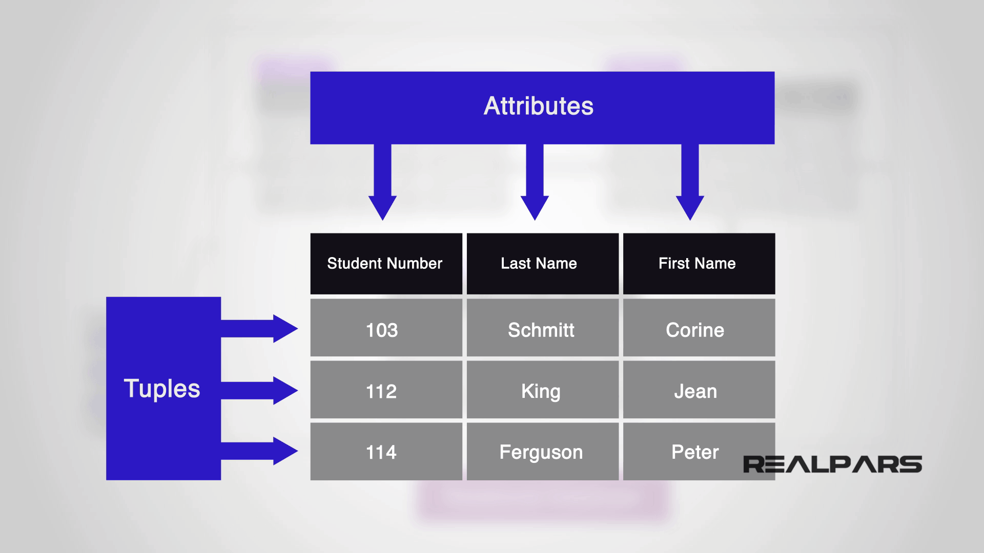 각 테이블은 스프레드시트와 비슷하게 가로 행(튜플이라고도 함)과 세로 열(속성이라고도 함)로 구성된 레코드로 구성됩니다.