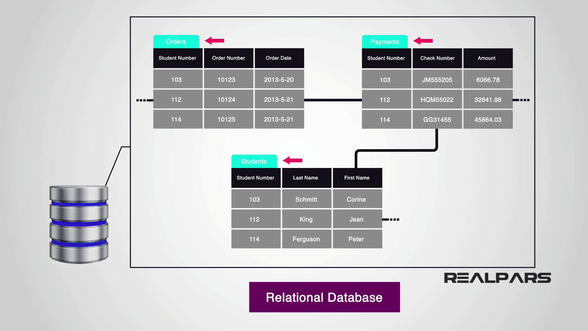 이러한 테이블에는 학생 번호와 같은 공통 열의 정보가 있는 고유한 정보가 포함되어 있어 테이블을 결합하고 서로 연관시킬 수 있습니다.