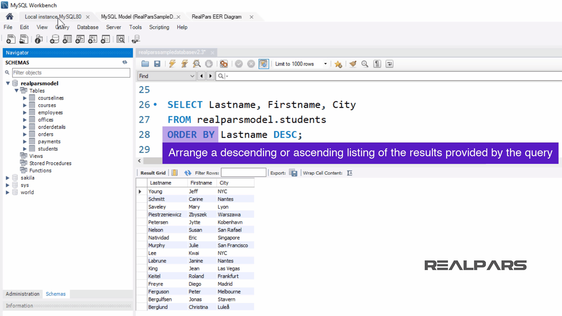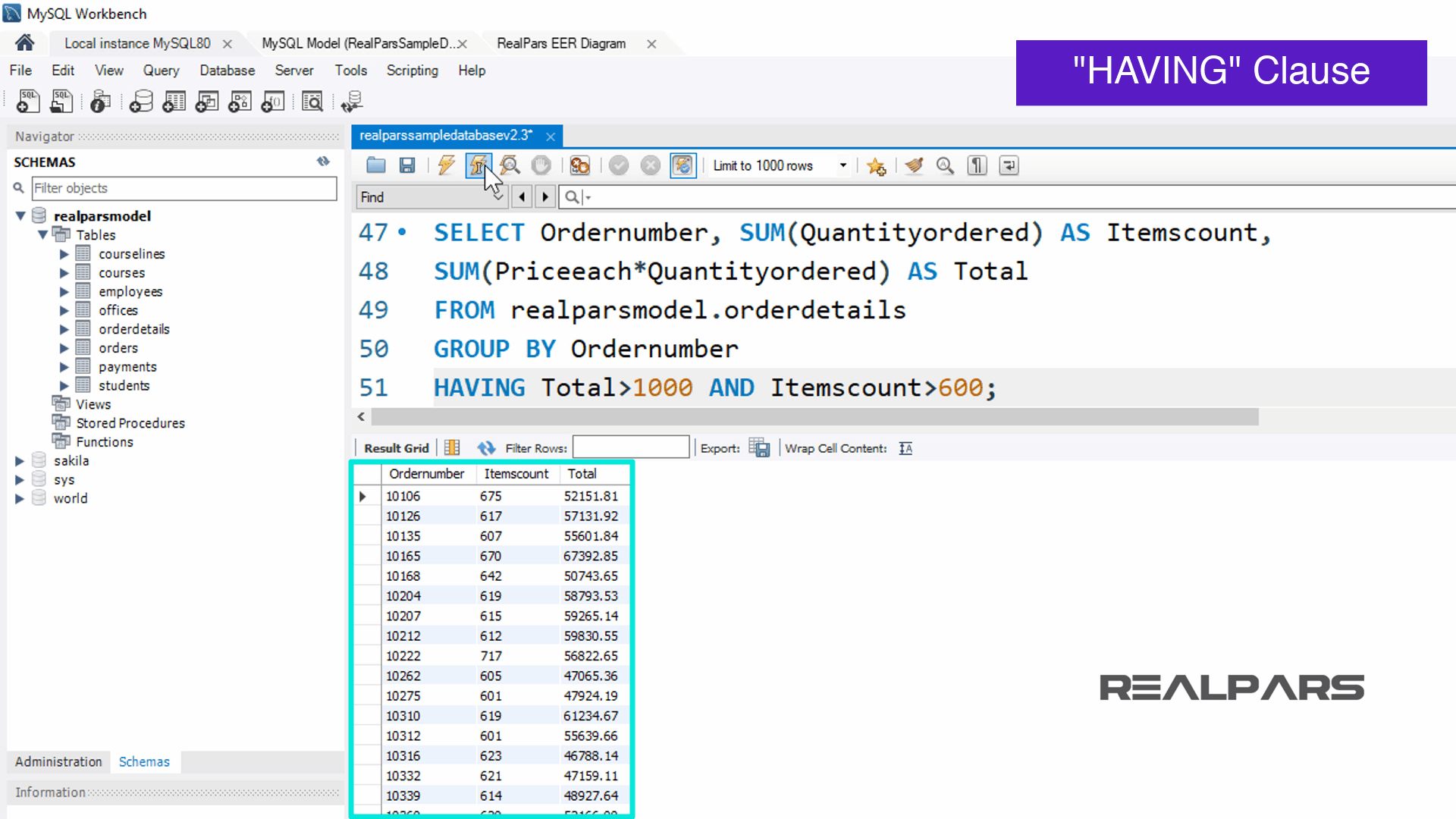 이 기사 시리즈에서 사용된 샘플 데이터베이스의 이름은 realparsmodel 이었습니다 .