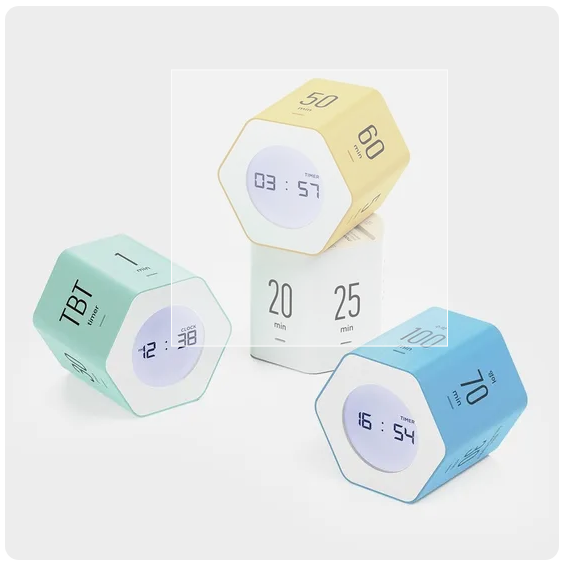 버튼 - 전원, Mode(포모도로, 시계, 알람, 분당 타이머, 10분 제어, 시간 제어,