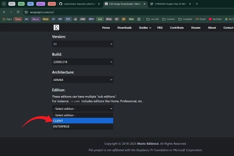 Raspberry Pi 설치를 위해 Microsoft 서버에서 Windows 11 ARM64 ESD 패키지 다운로드